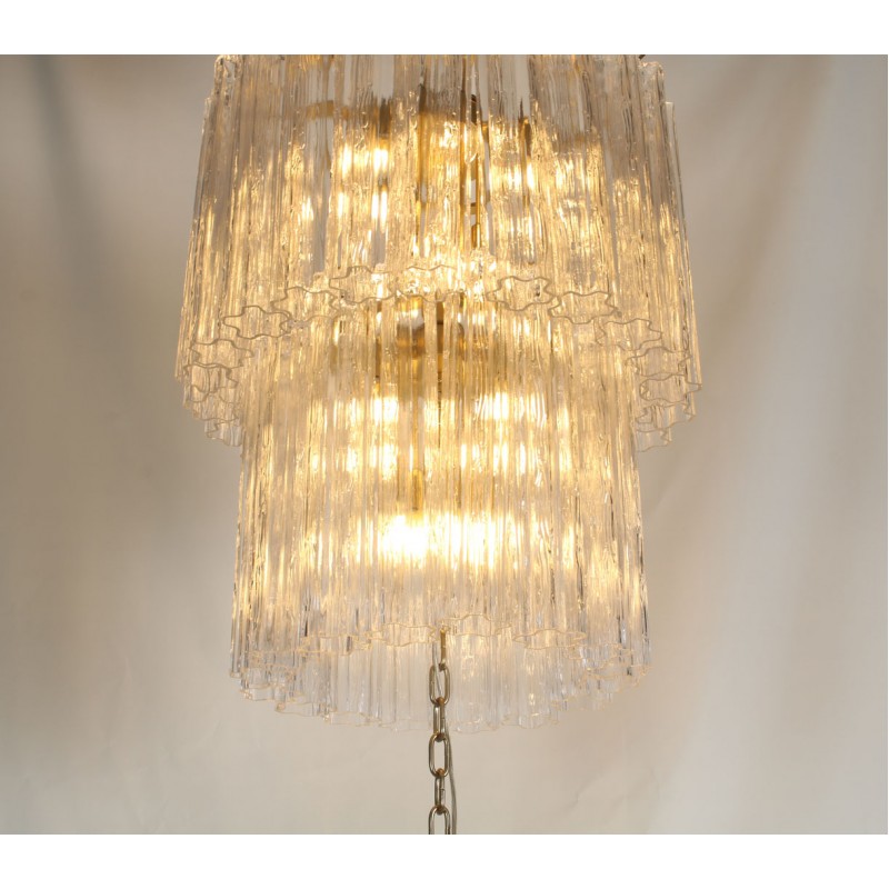 The Lymington chandelier is with a classic line, and hand-textured glass cylinders cascading from the frame to radiate and refract light. The tiers can be specified to produce the Chandelier in a variety of sizes. The glass is intricately molded and shaped to form ornate cylinders that cascade from the central frame. The strong and substantial frame is made from high-quality steel and plated in nickel. Our products achieve exquisite luxury with handmade pieces by metal masters taking care of every detail.