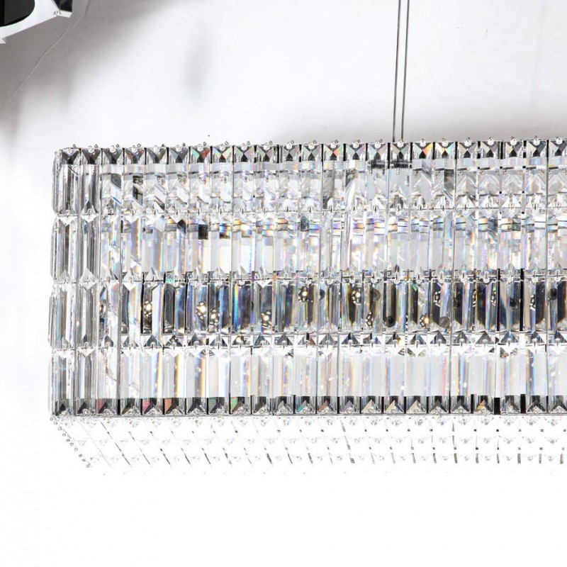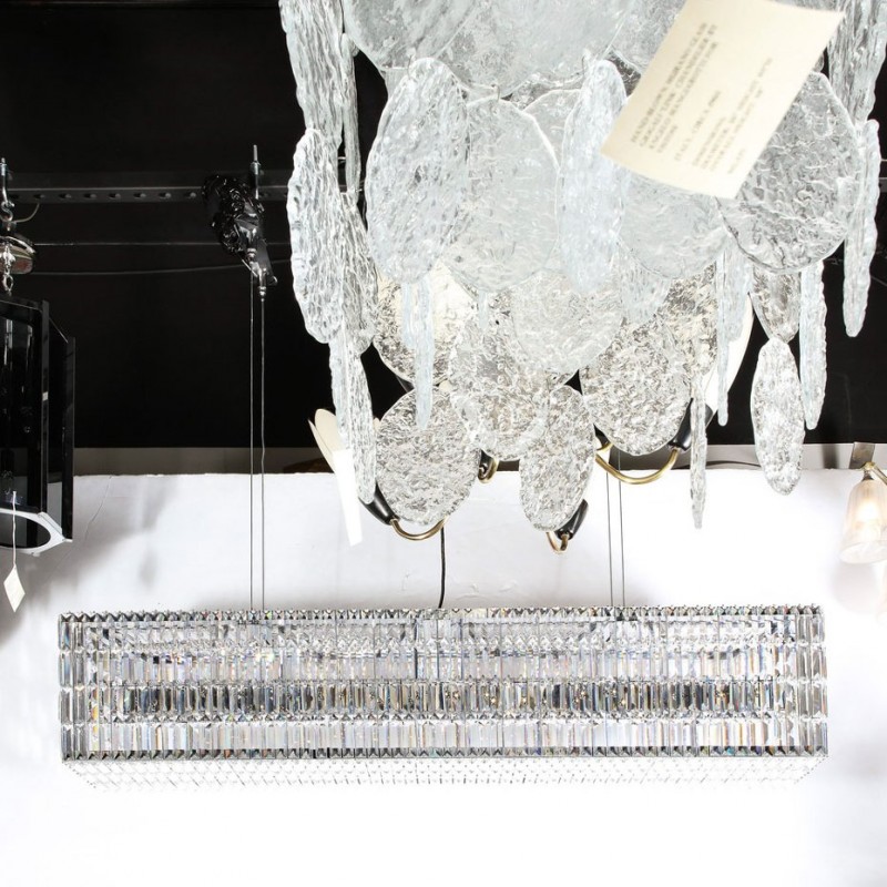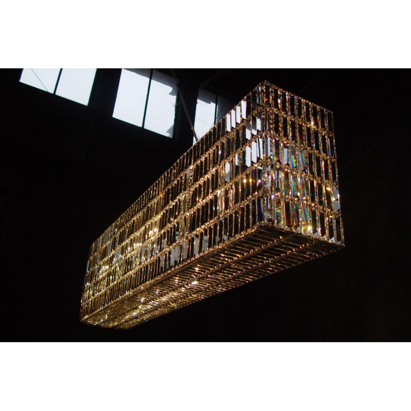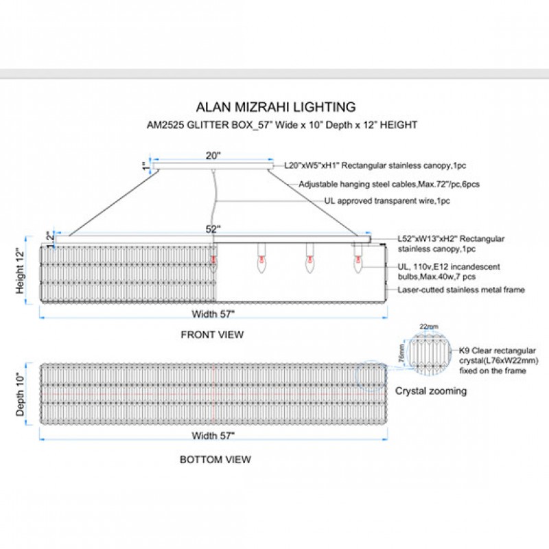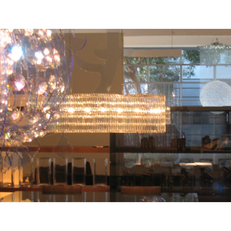 This stunning Glitter Box Pendant light is covered with Austrian crystals characterized by a mixture of simplicity and sensuality. Glitter Box is a timeless and distinctive design described as a huge block of ice, floating in the air, glittering from inside and out. At Alan Mizrahi Lighting Design, we supply and manufacture many highly sought after designer pieces. All Chandeliers can be customized by number of lights, style, color and size to meet your specific needs. Every chandelier can also be combined with a matching table lamp and wall lamp to accomplish the best room design. Our company provides collections that can make all your project dreams come true.
