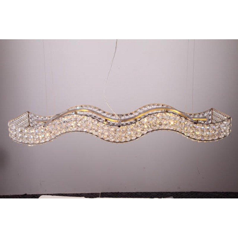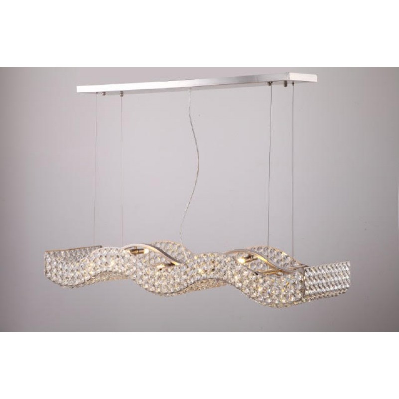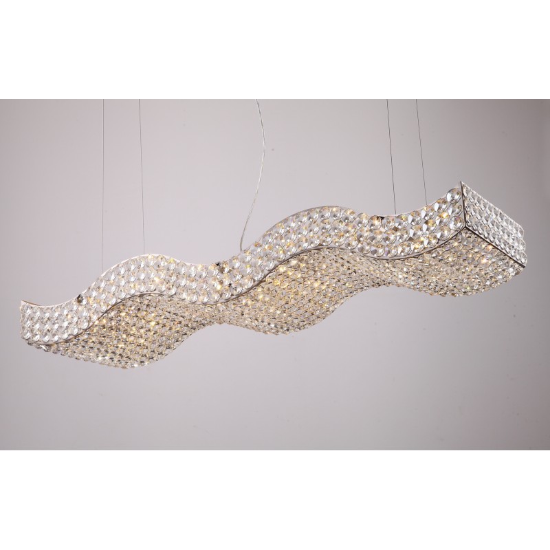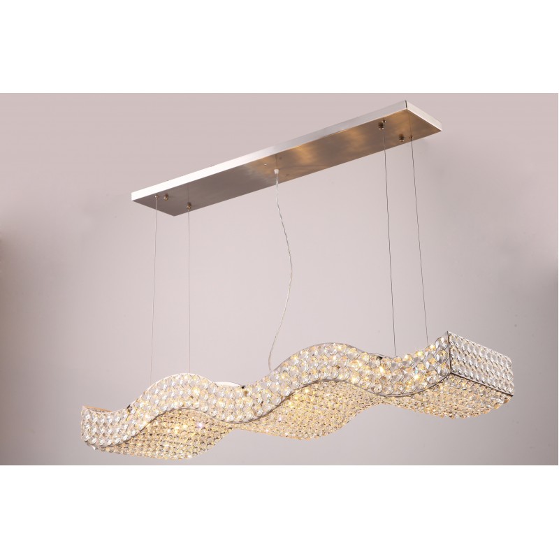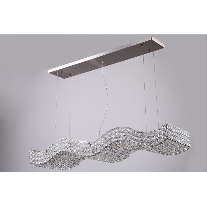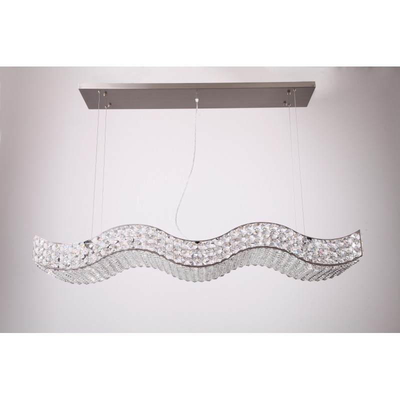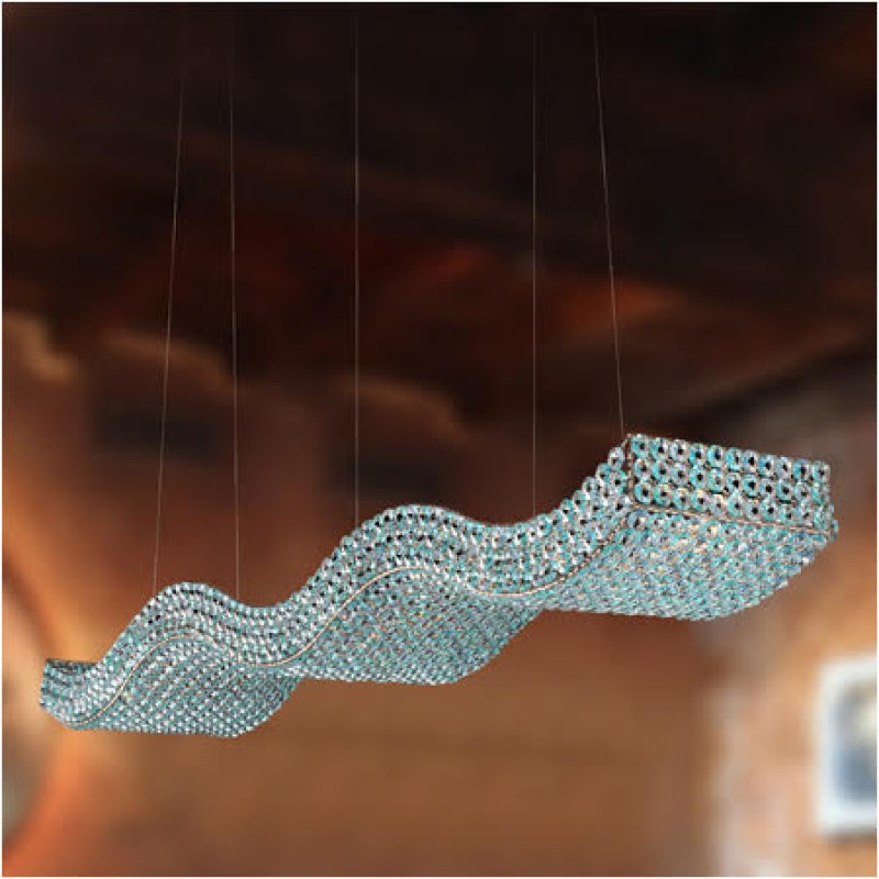 This “Waves” piece exudes all the glamour and class you'd need in your space with its glimmering 30% LED light green and clear flat laser cut crystals formed in a uniform pattern covering the entire piece from top to bottom. This piece comes from the exceptional design closet of Atlier Vivarini and displays luxury and modern aesthetic at its finest. Its gorgeous crystal embellishments frame balances beautifully with the brushed nickel finish and simplistic ceiling cables forming a dazzling statement making piece. Surprise your guests, employees, or whoever else that may encounter this contemporary and eye-catching fixture that would be a highly impressive focal point in any room you place it.