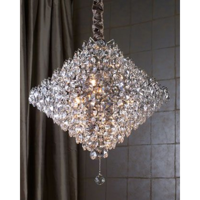 Here we have an ultra-gorgeous sparkling hexagonal crystal Horchow Pendant Chandelier Light. This wonderful epitome of all things luxurious and modern is available in two crystal colors: clear and gold tone. In addition, we also offer it in glass (the AM5900G in our online stores). Its design is very clean and contemporary and melds a tinge of modern edge with its geometric shape. There's not really much to say about this fixture, so I'll let it speak for itself-glitz and glamour at its finest! At Alan Mizrahi Lighting Design, we manufacture many highly sought after designer pieces. All Chandeliers can be customized by number of lights, style, color and size to meet your specific needs. Every chandelier can also be combined with a matching table lamp and wall lamp to accomplish the best room design. Our company provides collections that can make all your project dreams come true.