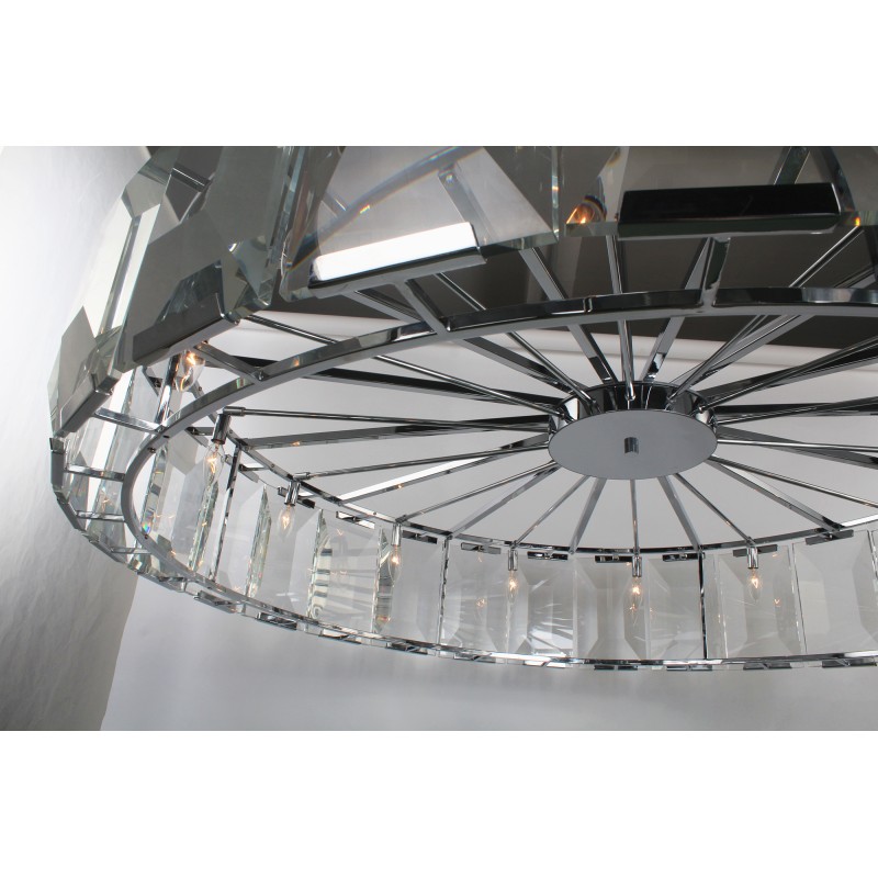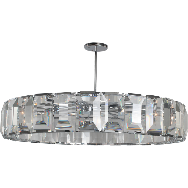 Inspired by a German chandelier from the 1970s, our fixture evokes the boldness and glamour of the era. A band of faceted crystal glass prisms reflects and refracts the light, capturing the essence of emerald-cut diamonds. Having created custom chandeliers for over three decades, we specialize in bringing lighting concepts into reality, whether your inspiration comes from a rough sketch, an existing chandelier, our original concepts, or even your own creative imagination. Large or small, our team can meet the challenge, and can even coordinate the production of a private collection, where all finishes are kept consistent. Let us create the perfect lighting fixtures for your individual needs, to your individual specifications, and with attention to detail throughout