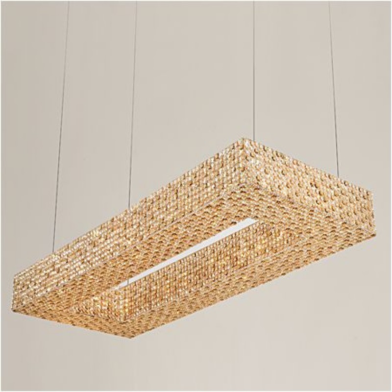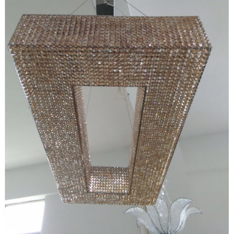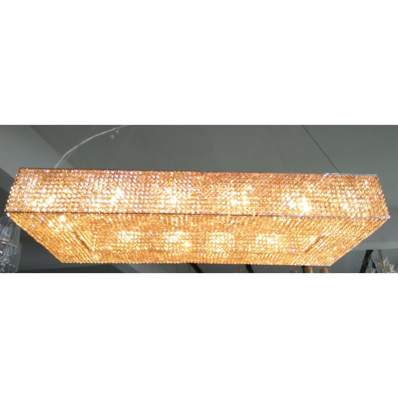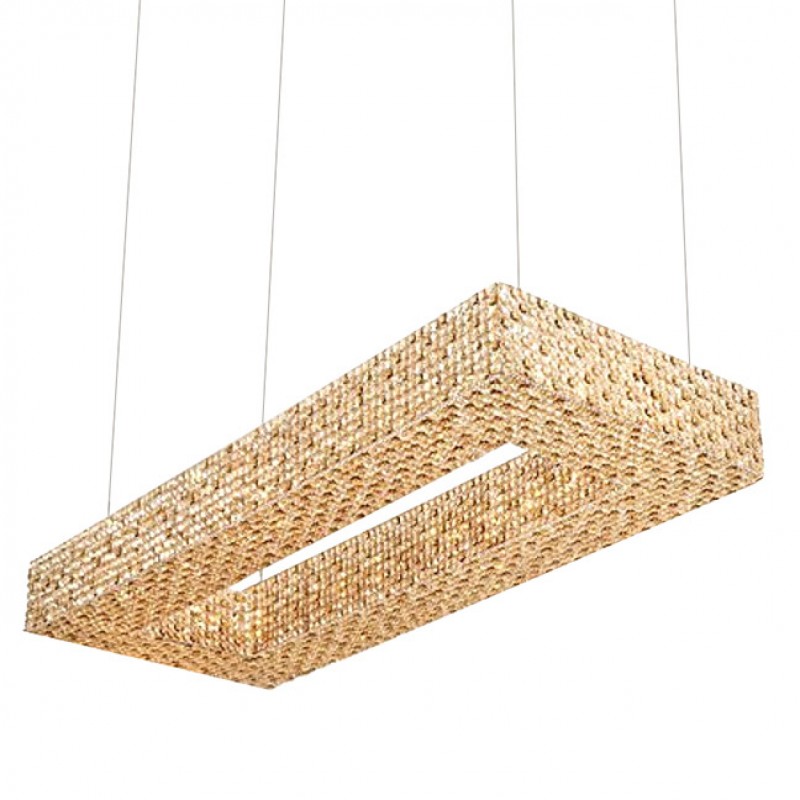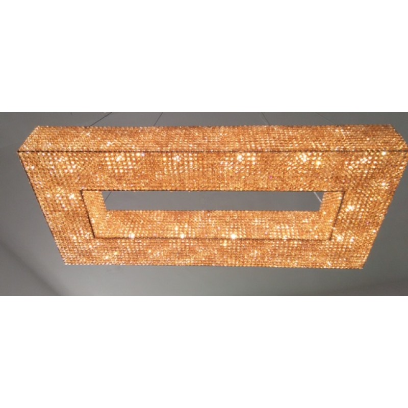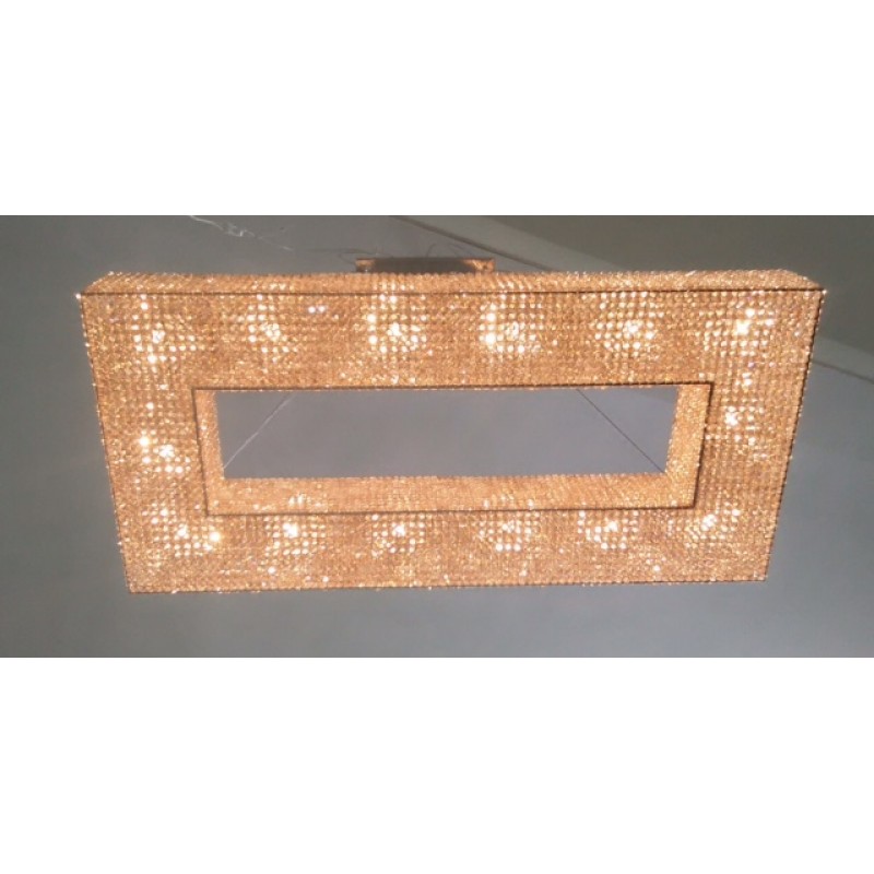 Here, we have this ultra-luxurious “Cornice Rectangular” chandelier that would be a beautiful focal point for your space. This piece embodies the philosophy of Alan Mizrahi by melding a stunning combination of high-quality unique materials and a modern, contemporary look that transforms into a chandelier to cherish now and in the future. This chandelier, like all our pieces, was created to add ample prestige to your home or venue. It features a wide array of uniformed multifaceted crystals, which are placed one by one on the frame, and adorn every inch of the fixture (minus the center cables of course) Its lovely golden hue is sure to cause many second glances and even more compliments.
