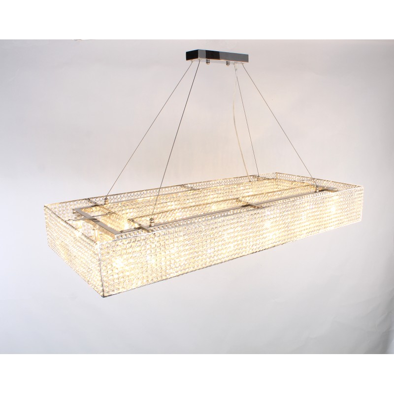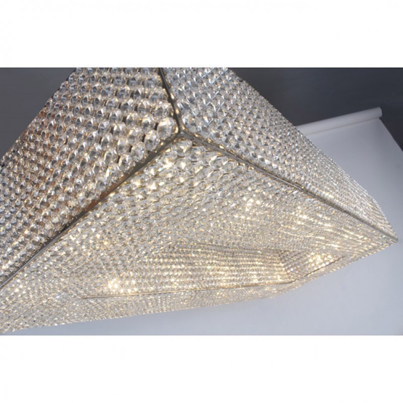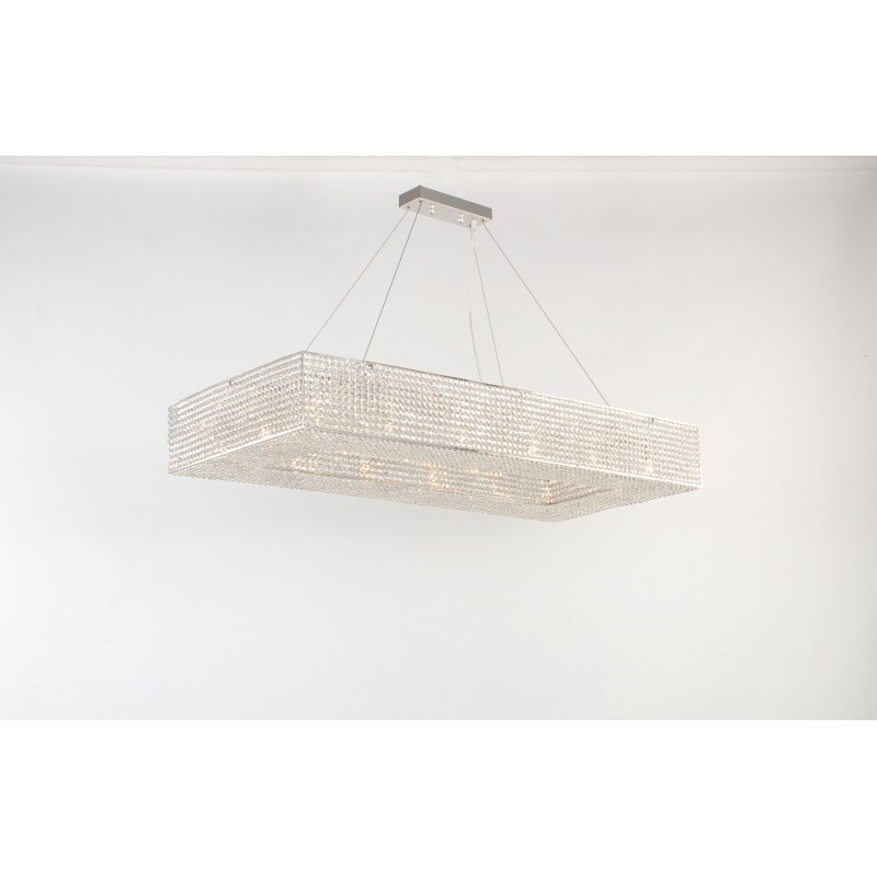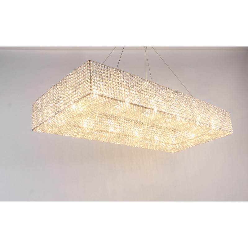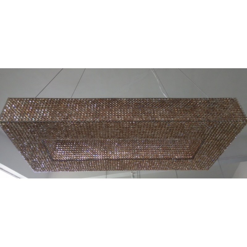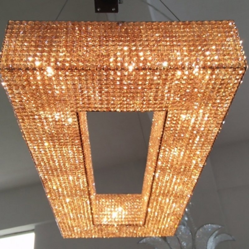 Here, we have this ultra-luxurious “Cornice Rectangular” chandelier that would be a beautiful focal point for your space. This piece embodies the philosophy of Alan Mizrahi by melding a stunning combination of high-quality unique materials and a modern, contemporary look that transforms into a chandelier to cherish now and in the future. This chandelier, like all our pieces, was created to add ample prestige to your home or venue. It features a wide array of uniformed multifaceted crystals, which are placed one by one on the frame, and adorn every inch of the fixture (minus the center cables of course) Its lovely golden hue is sure to cause many second glances and even more compliments.