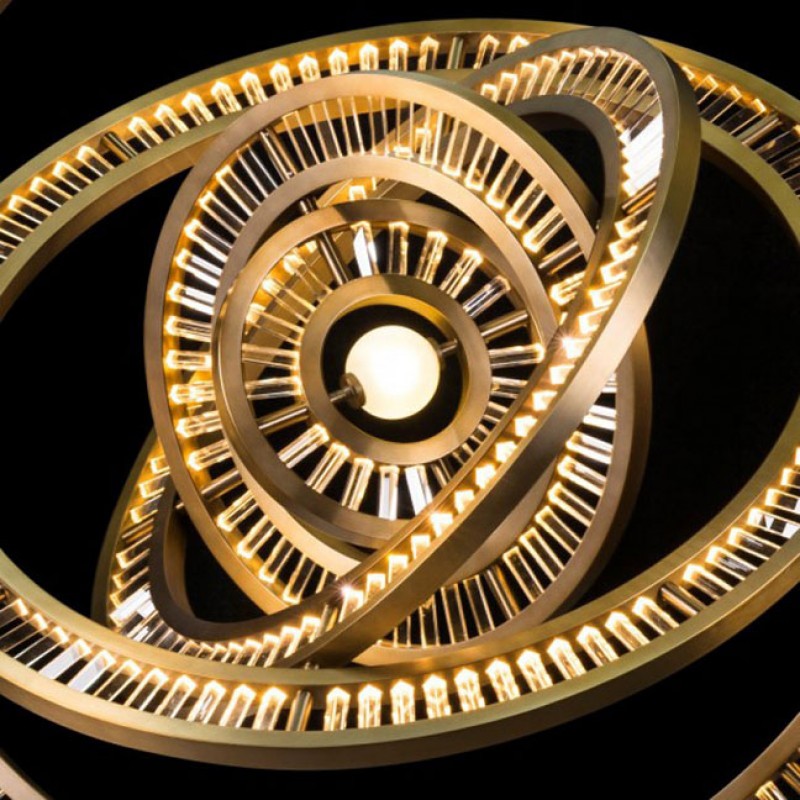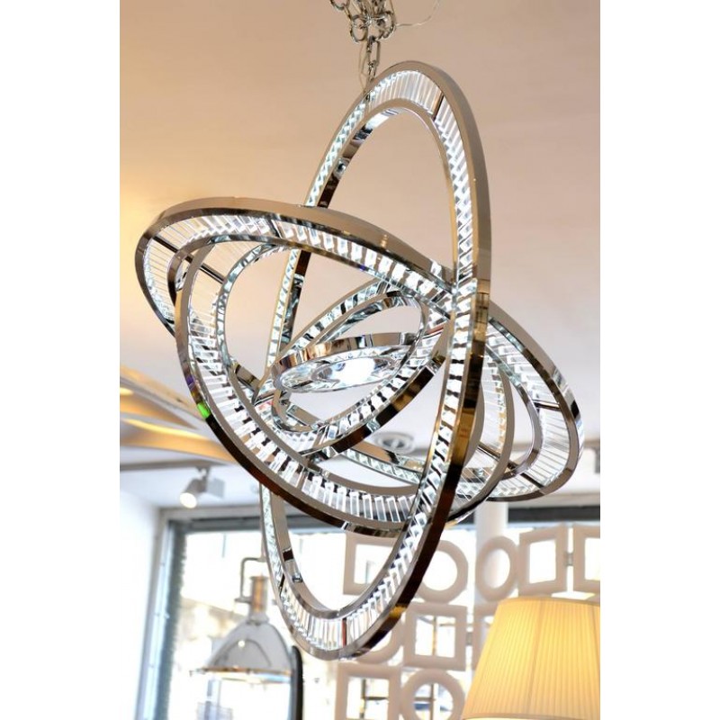 In 1935, Albert Einstein and Nathan Rosen realized that general relativity allowed for the existence of “bridges”; cosmic shortcuts through the fabric of space and time. Inspired by the Einstein-Rosen Bridge, or ‘wormhole’ as it became known, the Rosen Bridge light celebrates interwoven cosmic frontiers. Glass rods are held between rings of shiny steel, bouncing and refracting the light from a central glowing orb. Inner rings can pivot to your desired position, creating your own path through space. Rosen Bridge pendant is available in either cool or warm white LED lights or the frame in Chrome or Natural metal finish. Crystal is a beautiful material. It has been with us for centuries and remains one of the most widely used components for chandeliers for its unworldly quality of reflecting light. Over the years we have witnessed a continuously growing fondness for working with it. We hope to bring this joy to you and your environment as we ultimately believe that good design should make the world around us a more beautiful and harmonious place to live.