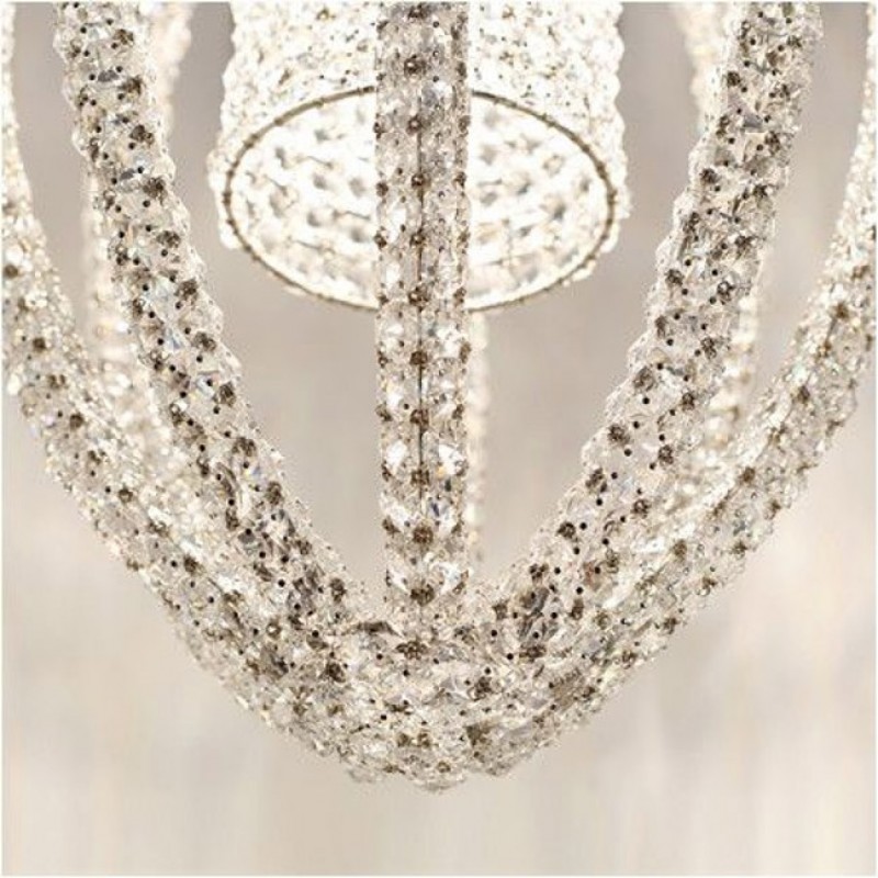This “Alexander” Chandelier from Atlier Vivarini embodies all that is opulent and contemporary with this steel based frame that supports an array of sparkling, octagonal K9 crystal pendants. It's bountifully designed with Vivarini's exclusive “Full Crystal Pave” technique and features a gorgeously shaped “rosebud” that is covered in wonderful sparkle and allure. The piece is finished with a coating of chrome paint, which melds the fusion of contemporary charm and glamour to a tee. Let this piece be the piece to talk about for years to come.