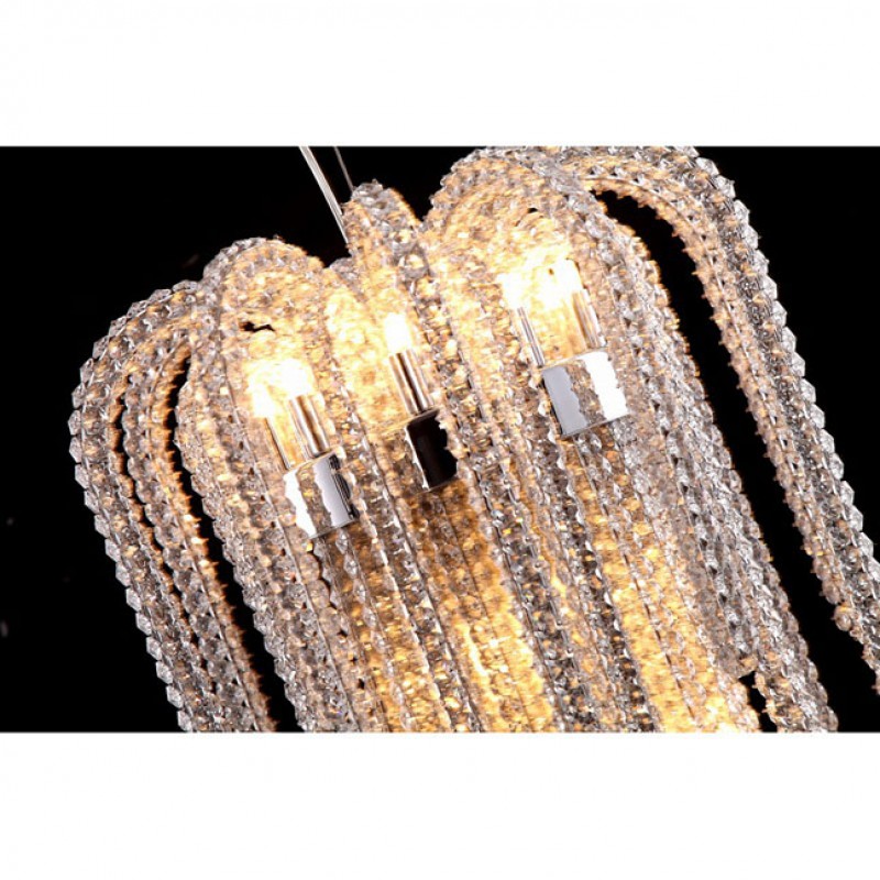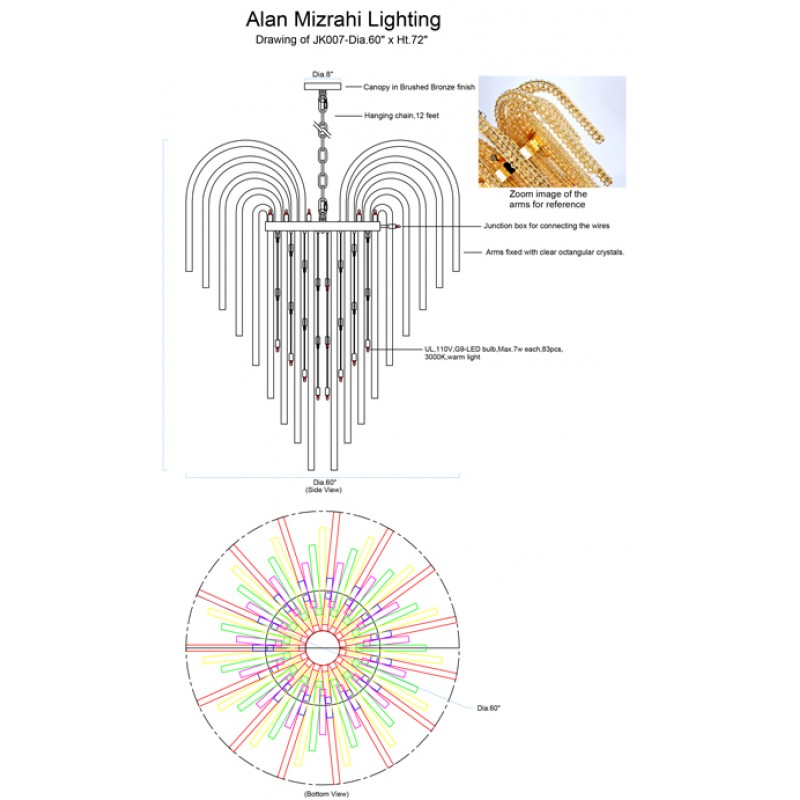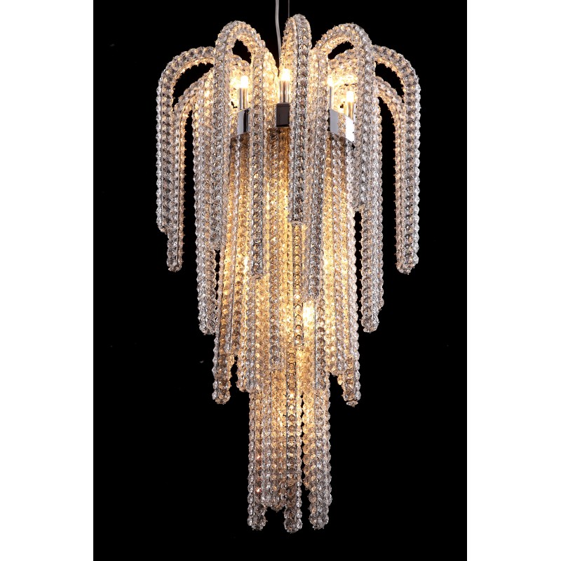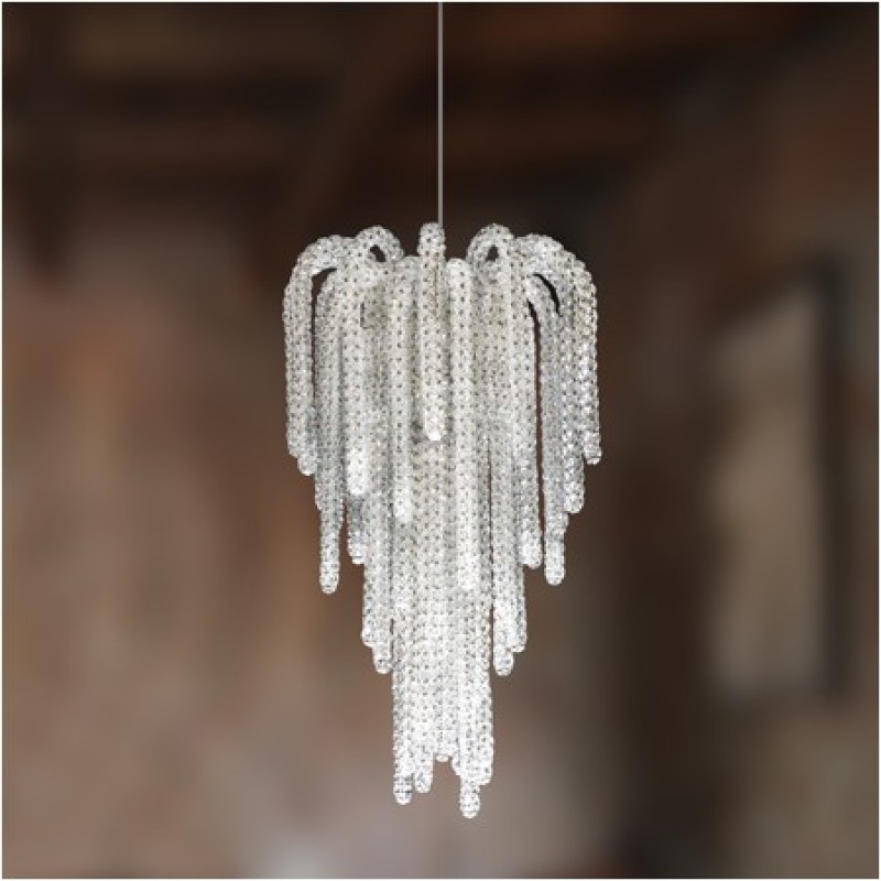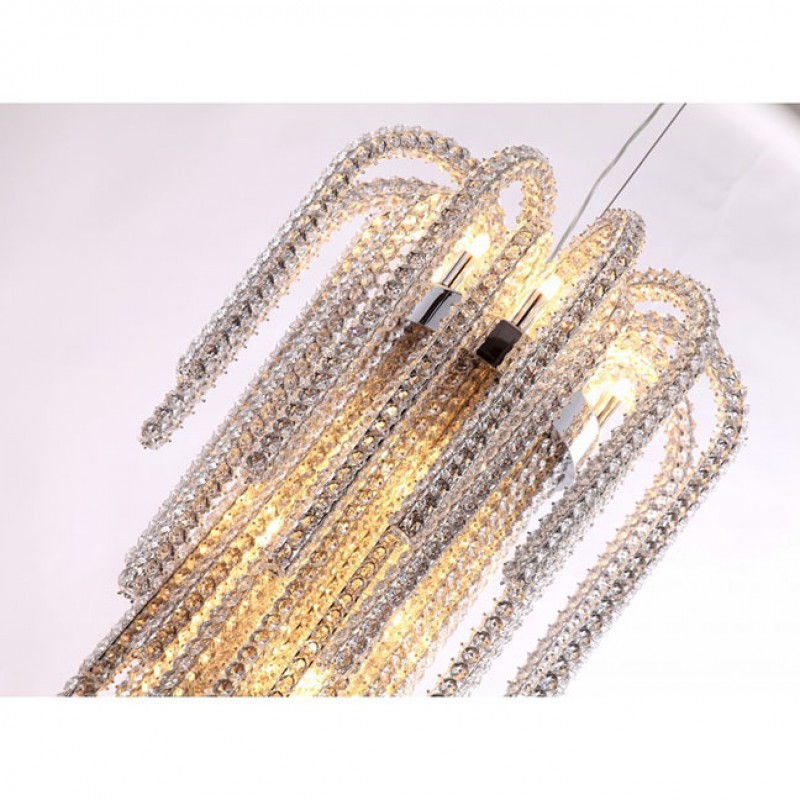 Bring a trend-setting statement piece to your space with this unique, and delicately crafted chandelier. As you can see in the photos, this "Rasta" model has a strong influence from Rastafarian culture, with its curved octagonal crystal strands flowing downward in a dreadlock type style along the entire piece. The crystals of this fixture were meticulously attached to the piece using the iconic "Full Crystal Pave" technique. If you are looking a unique piece that will draw attention and add depth to your space, this is one.