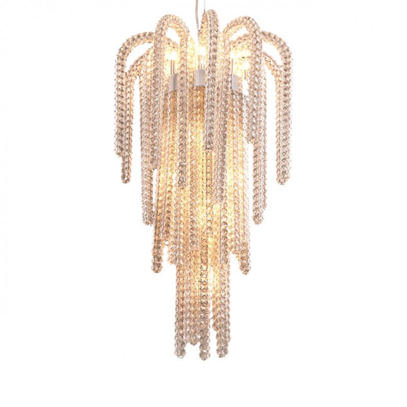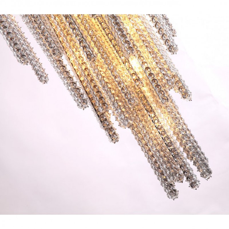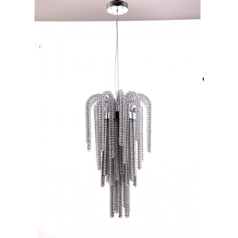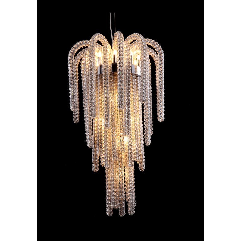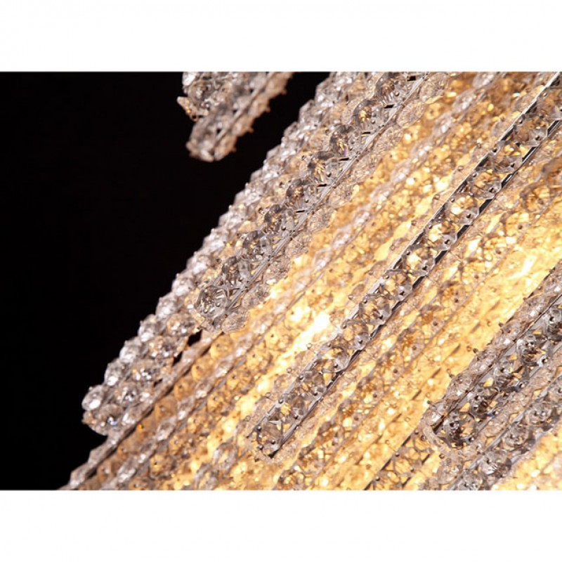 Bring a trend-setting statement piece to your space with this unique, and delicately crafted chandelier. As you can see in the photos, this "Rasta" model has a strong influence from Rastafarian culture, with its curved octagonal crystal strands flowing downward in a dreadlock type style along the entire piece. The crystals of this fixture were meticulously attached to the piece using the iconic "Full Crystal Pave" technique. If you are looking a unique piece that will draw attention and add depth to your space, this is one.