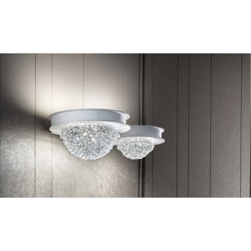 Bool is a Light of pure Italian crystal hand-cut in Milan with the traditional Bohemian-cut techniques that woven together like a thick and layered embroidery of gems suspended from a disappearing frame. The unique technique creates modern and warm lighting pieces with frames available in different shapes circular, elliptical, or rectangular. The collection includes centerpieces and sconces. It unfolds a wide palette of colors and sizes for you to design the piece that will compliment your interior. At Alan Mizrahi Lighting Design, we supply and manufacture many highly sought after designer pieces.