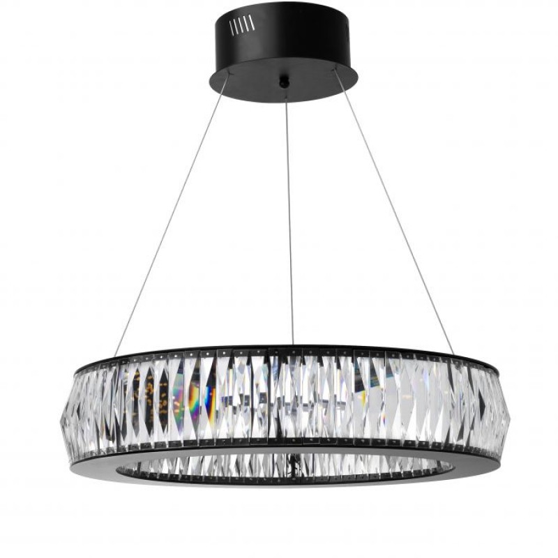 Bring a little sunshine into your home with the glamorous Vancouver Chandelier. This circular ceiling pendant is lit by LED lights which are housed inside the black drum shaped fixture. The attractive border of cut crystal glass adds an extra dimension to the light. This Chandelier can be placed in a horizontal or tilted position by adjusting the length of the cables.