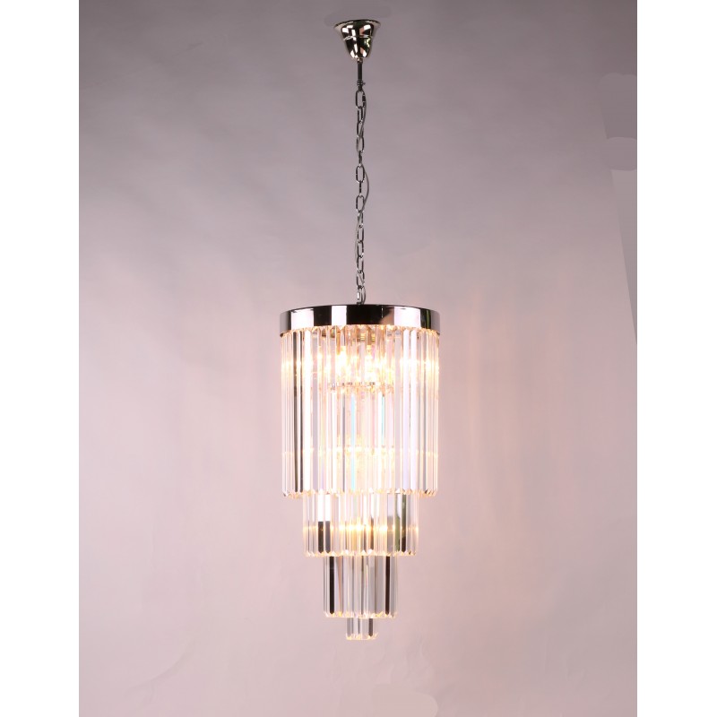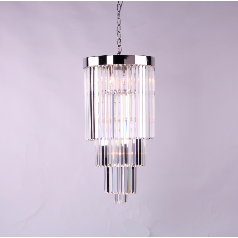 Meld the finest of fixtures into your space effortlessly with this wonderful contemporary, round chandelier that is embellished flawlessly with clear, baguette style crystals on each side. The fusion of the fixture's modern shape, blend of elegant crystals and polished finish place this piece into a very, smooth, luxurious category of its own. This fixture features 3 floors of gorgeously high-quality crystals and is sure to look amazing in nearly any room, venue or other location. Also available in other finishes such as a polished and brushed gold, brass, nickel, black nickel, and copper. Offering the ultimate in versatility. Made to a world class standard. Because our lightings are made by a workforce that still relies on traditional working methods, each product is unique and carries with it sensitivity of the artisan. Attract attention, provoke emotion to what the imagination with games of light and matter, such as the ambition and the creative spark of existing elements of the space.