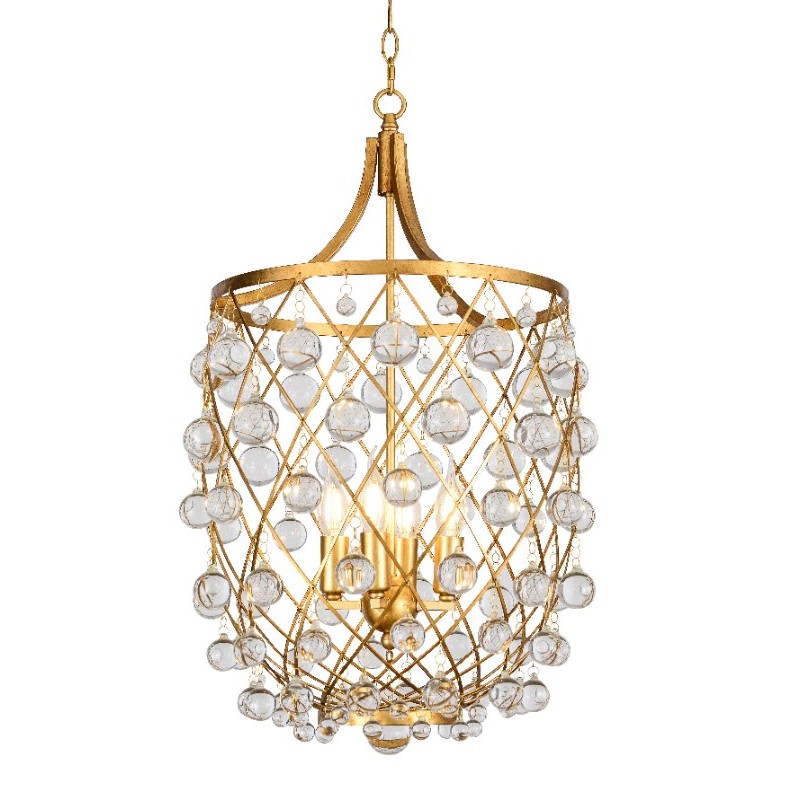 Lights: 4L 110V USA/220V Europe 40W candelabra bulbs (included)