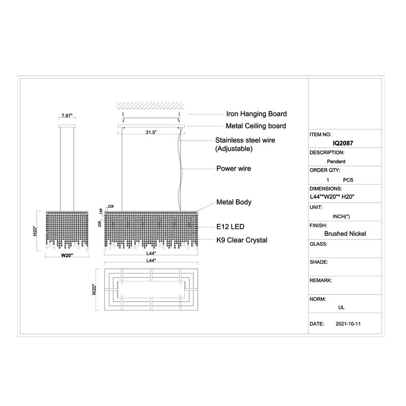 IQ2087 IMPERO RECTANGULAR CRYSTAL SUSPENSION