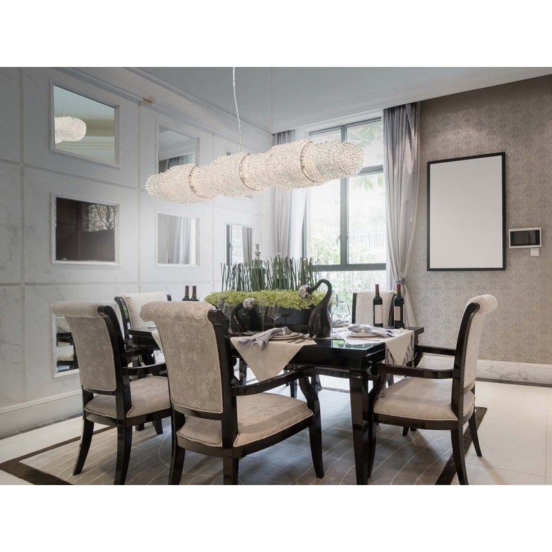 The 50 LINEAR is a crystal beaded glass on a polished chrome framework. At Alan Mizrahi Lighting Design, we supply and manufacturer many highly sought after designer pieces. All Chandelier can be customized by a number of lights, style, color and size to meet your specific needs. Every chandelier can also be combined with a matching table lamp and wall lamp to accomplish the best room design. Our company provides collections that can make all your project dreams come true….