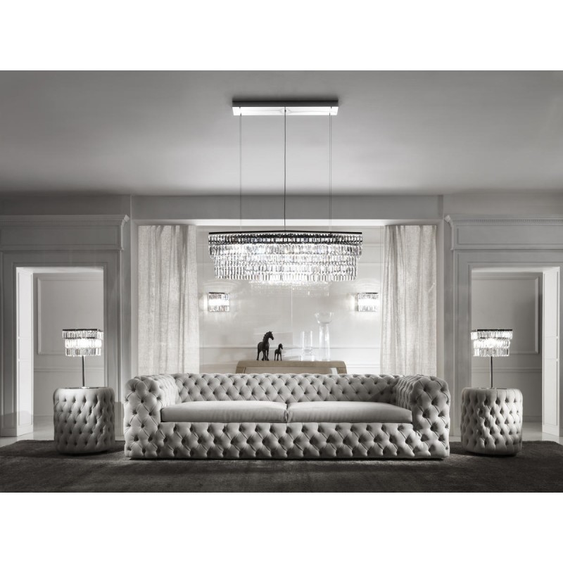 Chandelier with structure in shining brass or shining chrome. Having created custom chandeliers for over three decades, we specialize in bringing lighting concepts into reality, whether your inspiration comes from a rough sketch, an existing chandelier, our original concepts, or even your own creative imagination. Large or small, our team can meet the challenge.