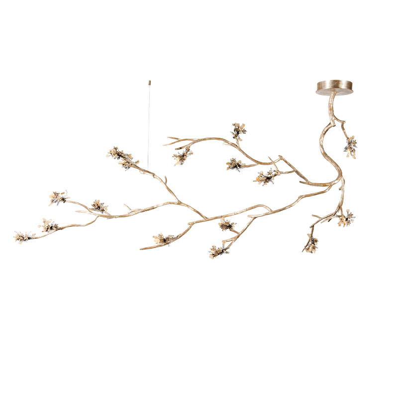 Bloom Drifitng chandelier finished in silver ochre gilt, custom citrine bead clusters with silver ochre gilt flowers. This gorgeous Pendant light is the unique way to enhance your beautiful space.