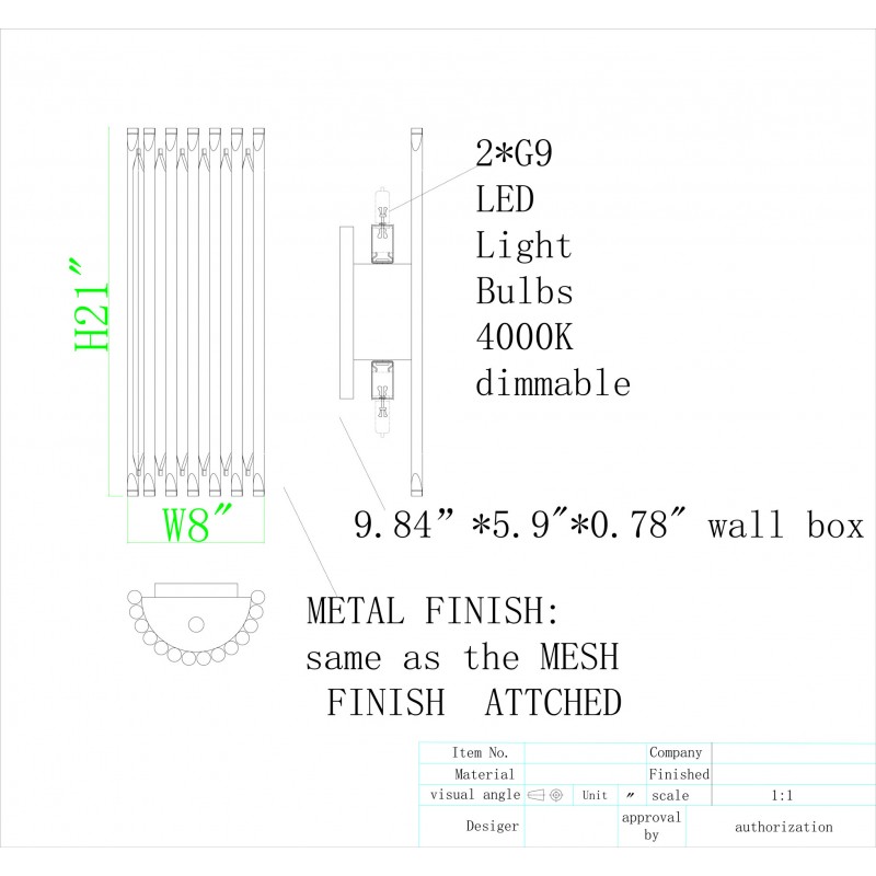 Bulbs:  6 Lights G9 Bulbs 40w max