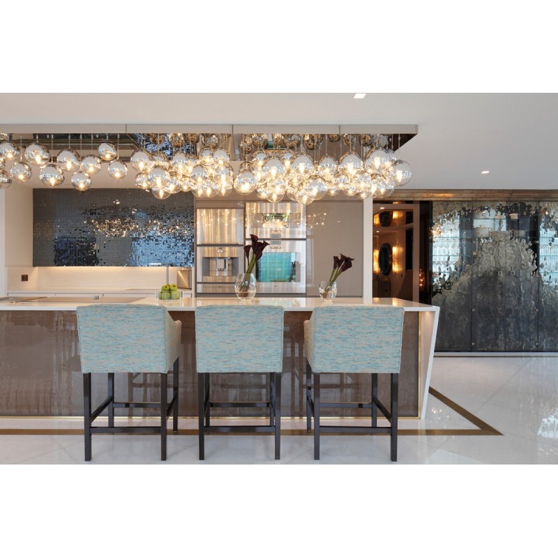 Glass and chrome are brought to life in a lighting feature with a captivating sense of movement perfectly suited to contemporary spaces.