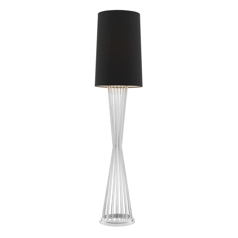 The Silver Contemporary Floor Lamp, an attractive design that will add an elegant contemporary addition to your interior design. Ideal for lovers of lighting, in fact, a necessity. The finest in great visual design. The lamp structure comprises of a fabulous feature circular base, and statement canes visually cinched in at the waist. Creating a unique modern focus. Made from iron, with a polished nickel finish together with a luxury black modern fabric shade.