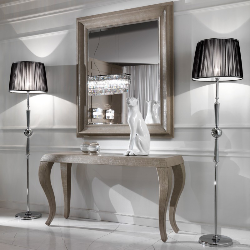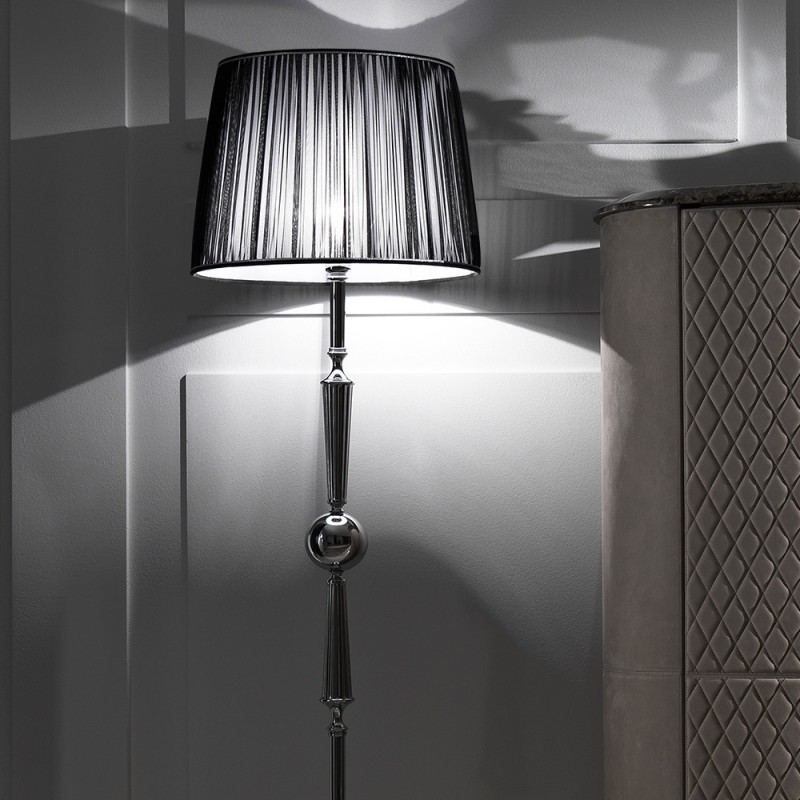The Chrome Contemporary Designer Italian Floor Lamp offers a modern touch. The ultimate statement indeed, adding magic and sparkle. Use in a bedroom, dining room, sitting room, or as a stunning welcome in any hallway. Beautifully striking especially when used paired symmetrically as shown. Truly versatile. Above all offering endless style and giving a luxurious atmosphere to any setting.