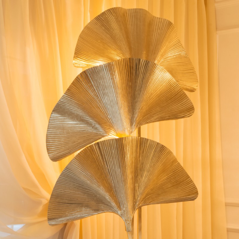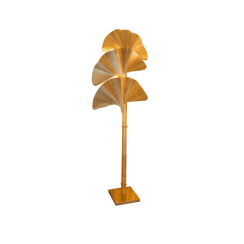 Designer Brass High-End Palm Leaf Floor Lamp. This fabulous floor lamp offers a sensational focus to your interior design. Made of solid brass with a polished finish, the design includes three beautiful undulating palm leaves that cast delightful shadows offering a unique presence. A true showstopper. This design also features a fabulous wall and table light.