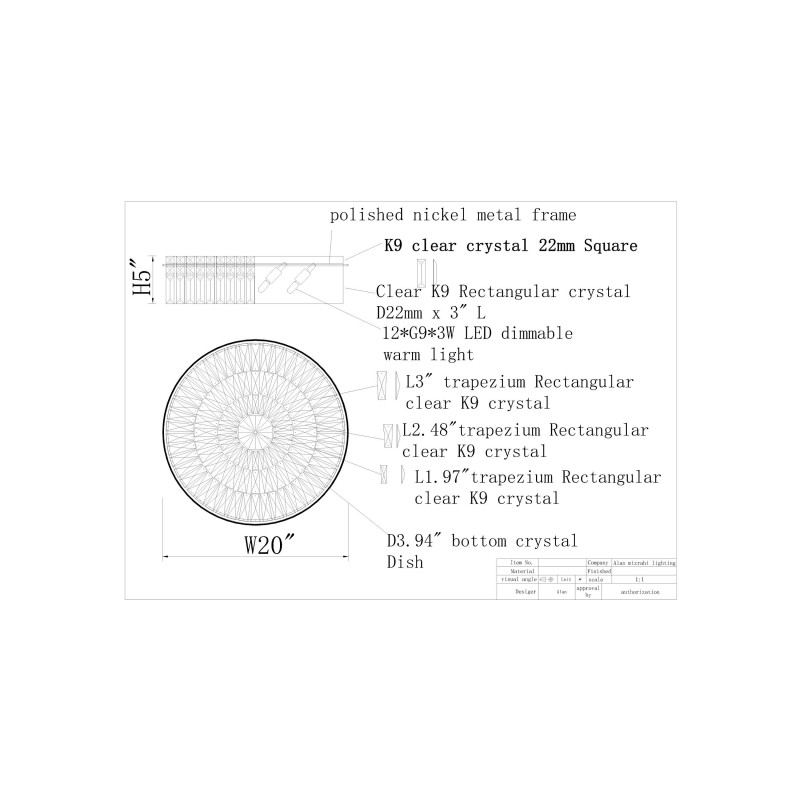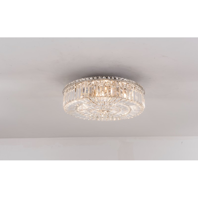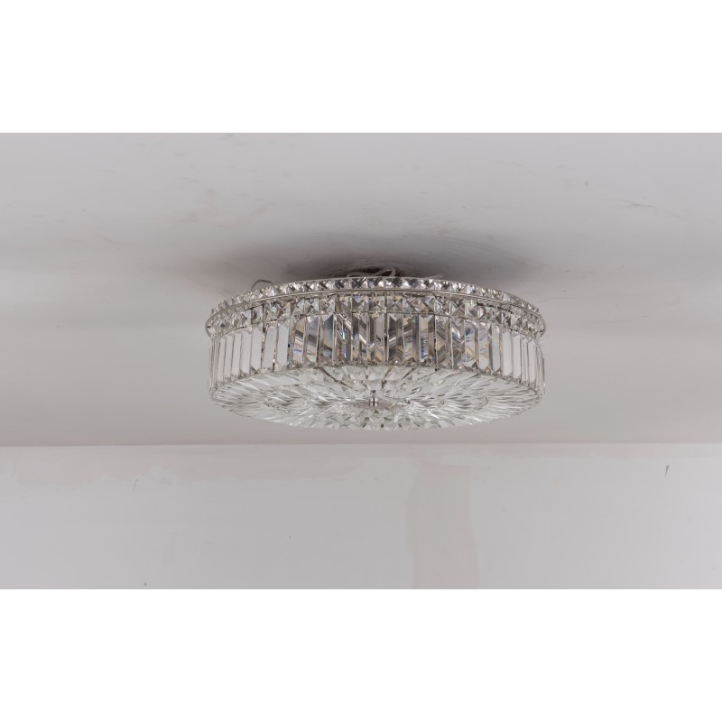 The semi-flush AM6147 represents the latest contemporary crystal style. The sleek, pristine lines of this fixture coupled with the timeless elegance of crystal, creates an awe-inspiring look. The highly polished finishes spark the crystal and ignite them with a wash of pure clean light. The dense crystal pattern of the Diamond Collection line of chandeliers, lamps, pendants, flush mounts and wall sconces are precisely engineered for the perfect distribution and reflection of light and you will be amazed by the balance and breathtaking beauty inherent in these contemporary crystal treasures. Geometric in shape and pattern the Diamond Collection is as precious and rare as the gem it is named for.