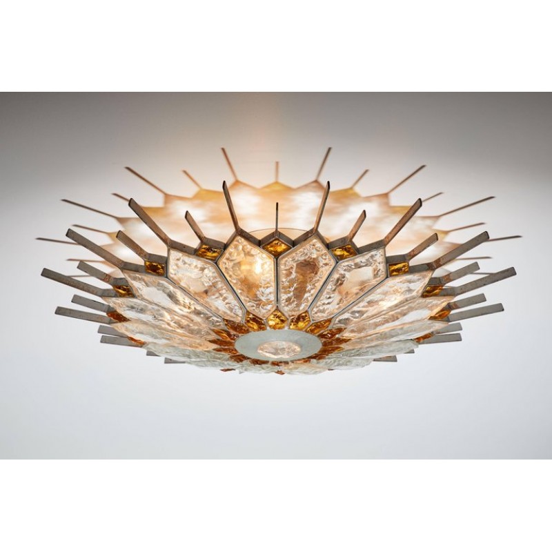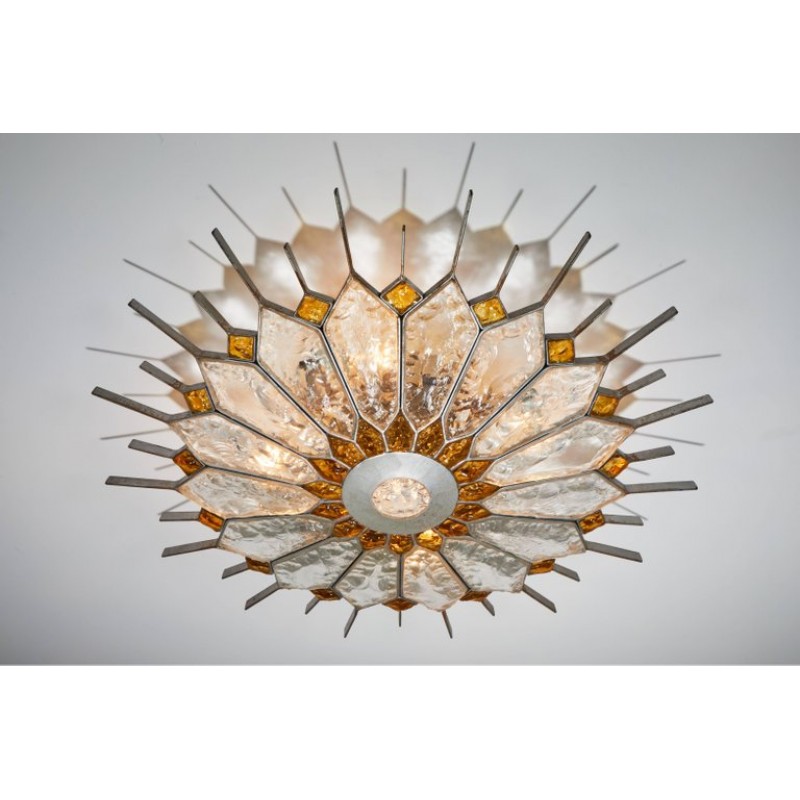 This gorgeous light features Mosaic cut-glass with a chiseled surface and welded steel.  Our products achieve exquisite luxury with handmade pieces by metal masters taking care of every detail.