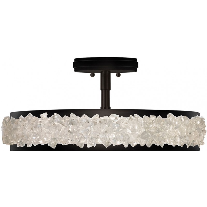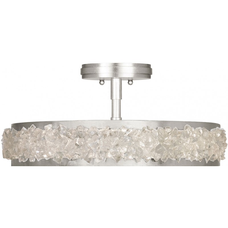 Semi-flush in a champagne-tinted gold leaf finish featuring hundreds of rough cut crystal glass gems that refract light in a manner reminiscent to the cirrus clouds ice crystals that form the lunar halo in the frozen night sky. Also available in platinized silver leaf or matte black.