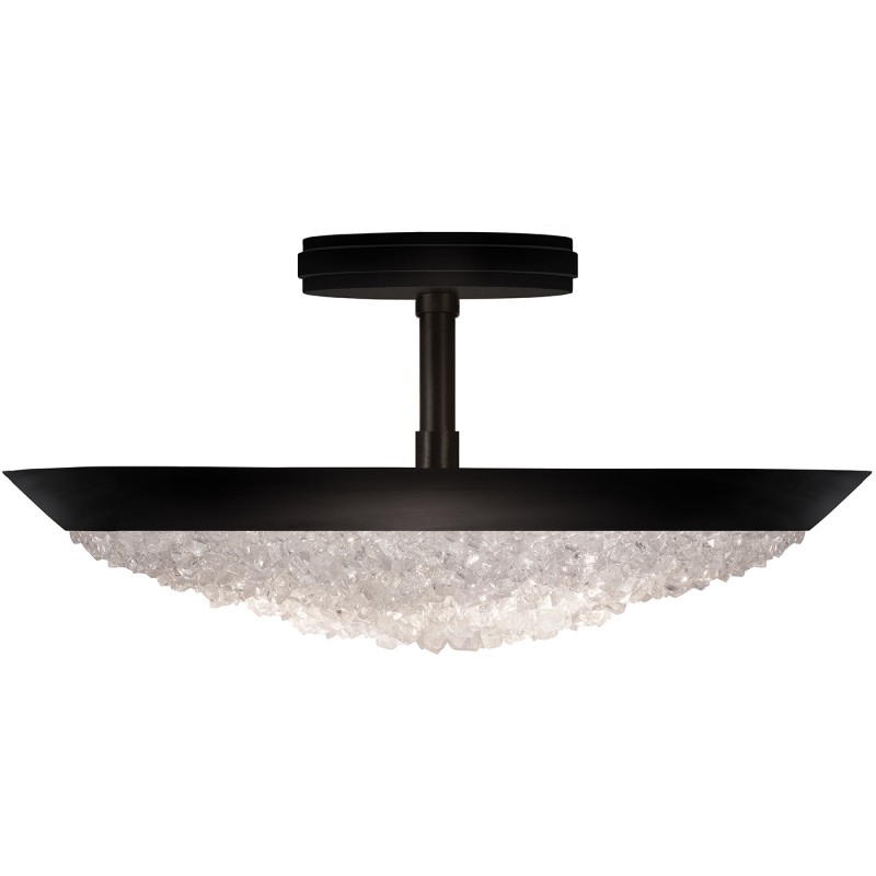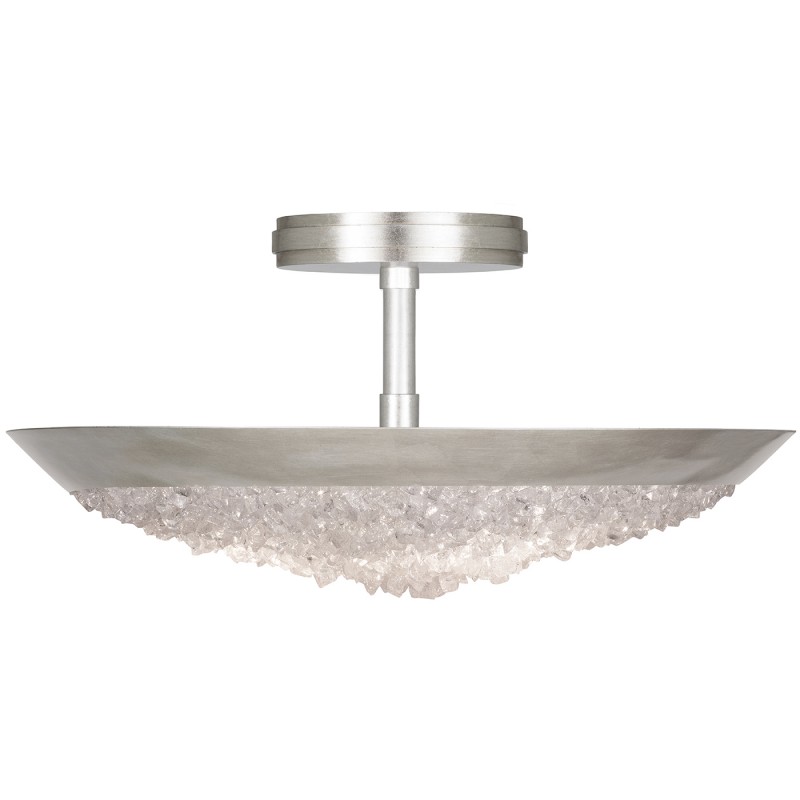 Semi-flush in a silver leaf finish featuring hundreds of rough cut crystal glass gems that refract light in a manner reminiscent to the cirrus clouds ice crystals that form the lunar halo in the frozen night sky. Also available in champagne tinted gold leaf or matte black.t crystal glass gems that refract light in a manner reminiscent to the cirrus clouds ice crystals that form the lunar halo in the frozen night sky. Also available in champagne tinted gold leaf or matte black. glass gems that refract light in a manner reminiscent to the cirrus clouds ice crystals that form the lunar halo in the frozen night sky. Also available in champagne tinted gold leaf or matte black.
