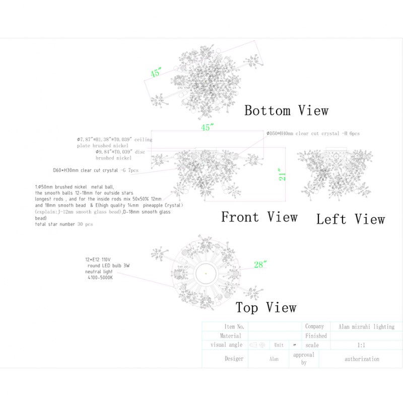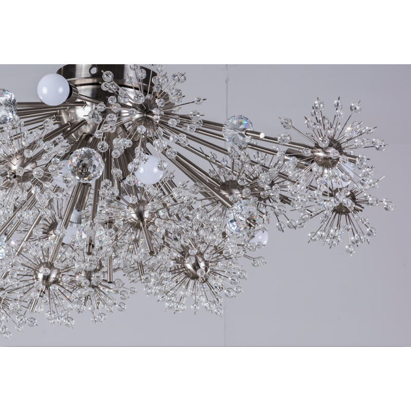 Be the life of the party ALL the time with this extremely elegant, yet modern Crystal Esprit Sputnik lighting fixture that glows with sophistication and pristine style. In addition to its extensively detailed design, there is also a huge celestial and space-oriented inspiration for this piece. The inspiration for it came from Wallace K. Harrison, the architect of the Metropolitan Opera House, when he gave the designers of the original Sputnik, pictures of the galaxy. The original Sputniks are one of the most recognizable features of the opera house, and it's said that you can even see them through the windows from the outside! At Alan Mizrahi Lighting Design, we supply and manufacturer many highly sought after designer pieces, All Chandelier can be customized by a number of lights, style, color and size to meet your specific needs. Every chandelier can also be combined with a matching table lamp and wall lamp to accomplish the best room design. Our company provides collections that can make all your project dreams come true. Lighting products play an important role in any room setting. Hence, you need to make sure that the items you choose should brighten the room while rendering it a relaxing and welcoming feel as well.