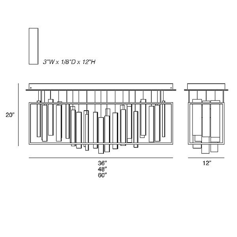 The Movimento Rectangular Chandelier features hand cut art glass panels, delicately hung on braided stainless steel line. The illusion of floating glass gives Movimento a decidedly whimsical feel, perfect for modern foyers, kitchens, living rooms, and bedrooms. The light source can be mounted in the canopy of the fixture, or integrated into the hanging glass. Movimento is available with an optional cold rolled steel frame, which is offered in polished or brushed nickel metal finishes. Provides ambient and decorative illumination. Ridgely Studio Works, a lighting company based in Toronto, was founded by Zac Ridgely in 2000 out of a passion for art and lighting. Their creations are creative and sculptural, incorporating unique and innovative design elements. With selections like the dramatic, shimmering Halo Criss Cross LED Chandelier and the geometric, adjustable Bar Wall Sconce, their lights are elegant, functional and artistic.