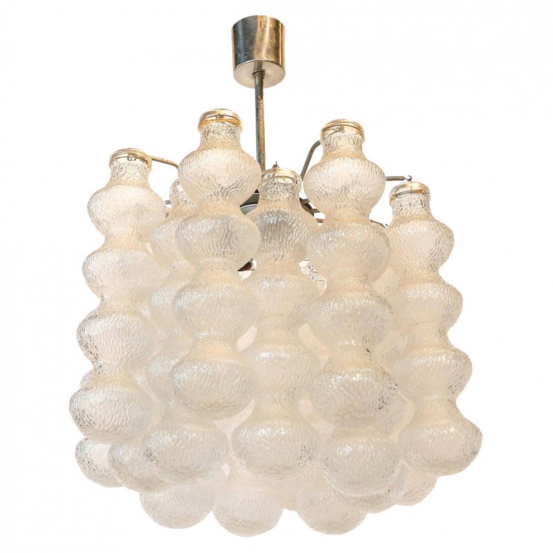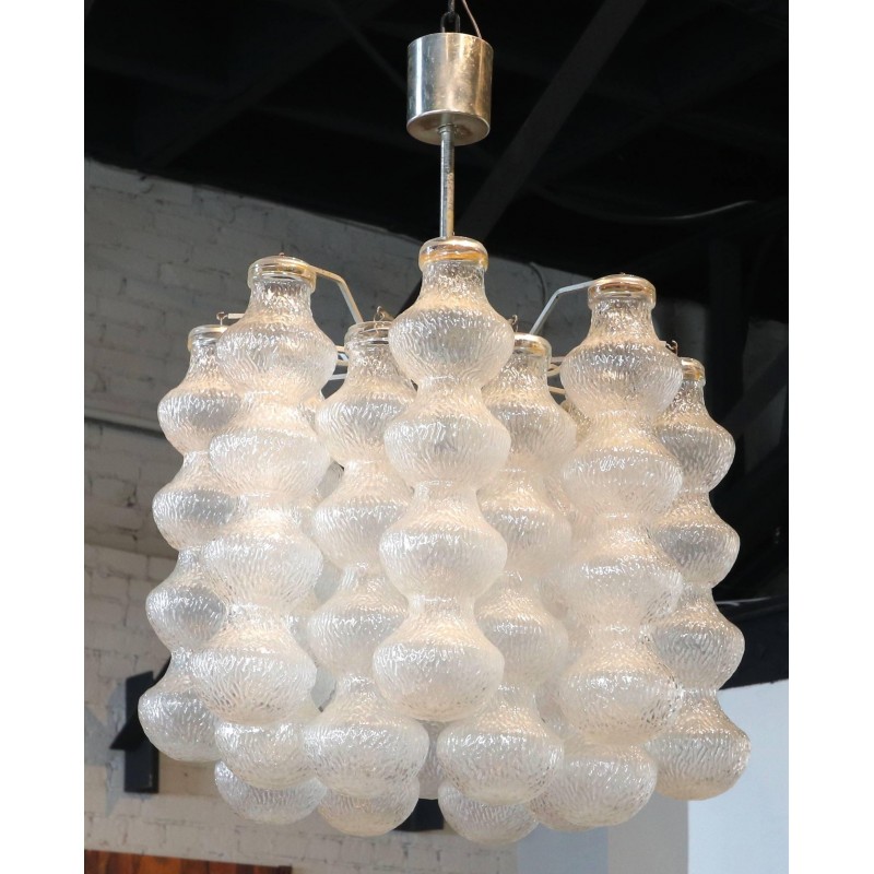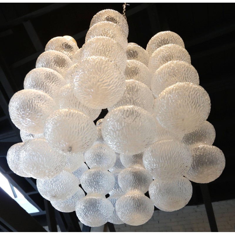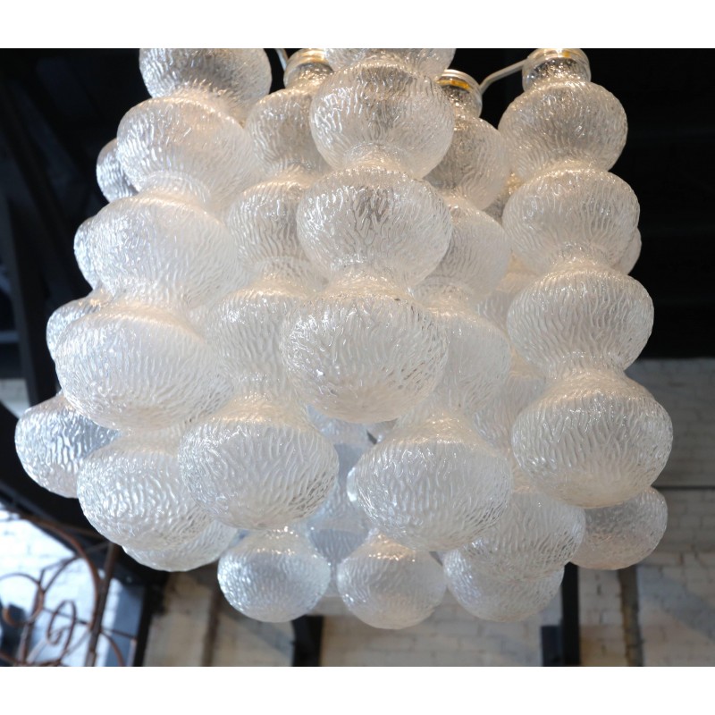 Seguso 1970s transparent bubble murano glass chandelier on a chrome frame with three-light.