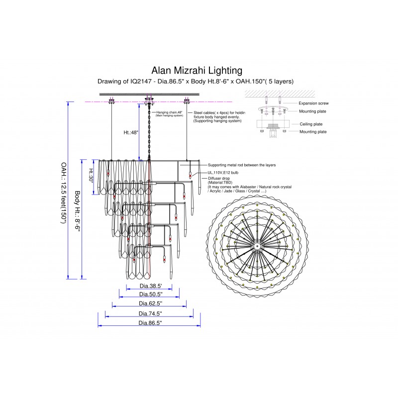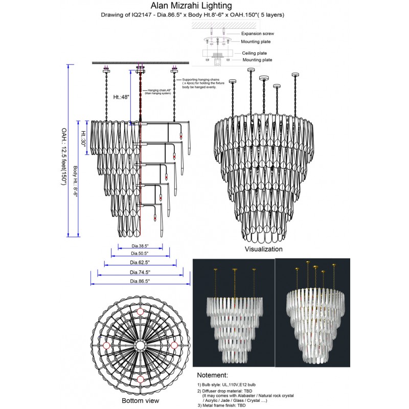 Bulbs: 110V USA/220V Europe 60WE12 clear candelabra bulbs (included)