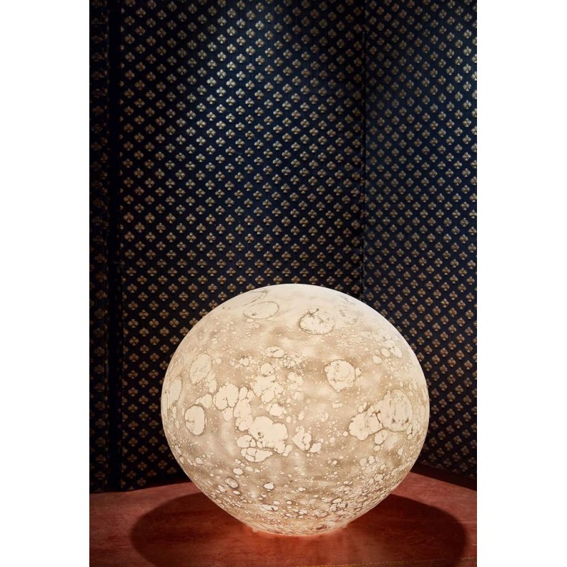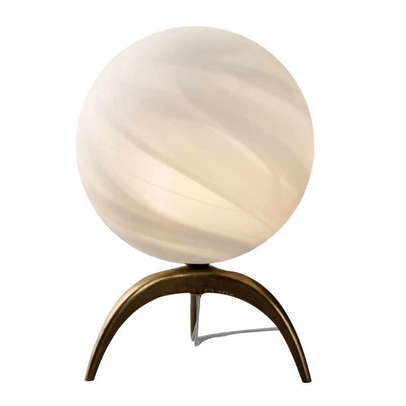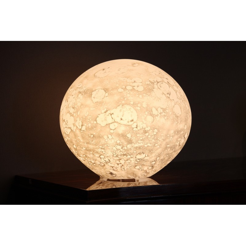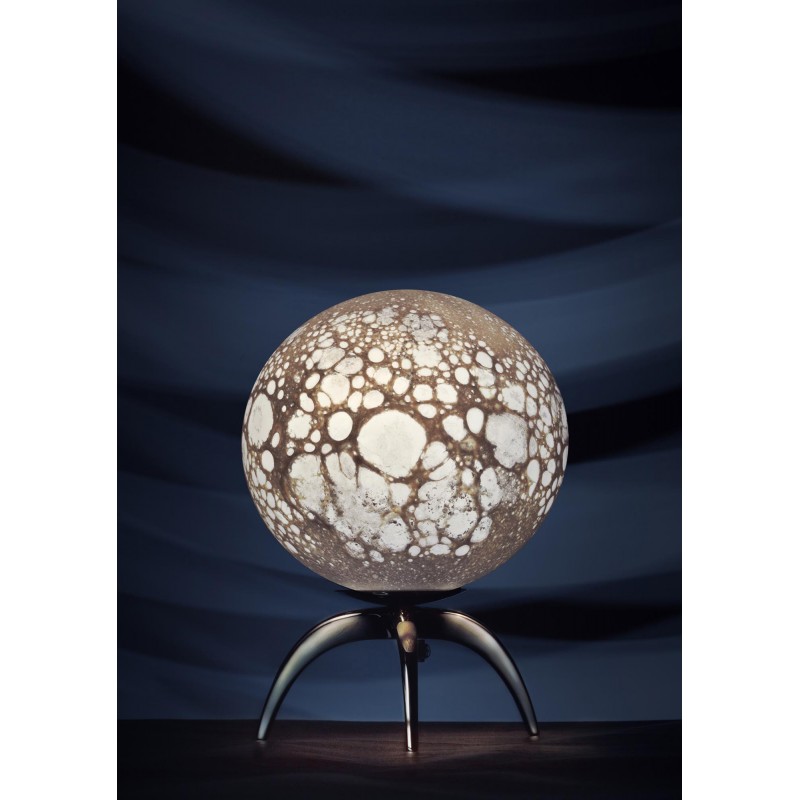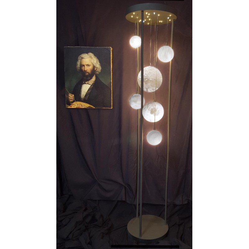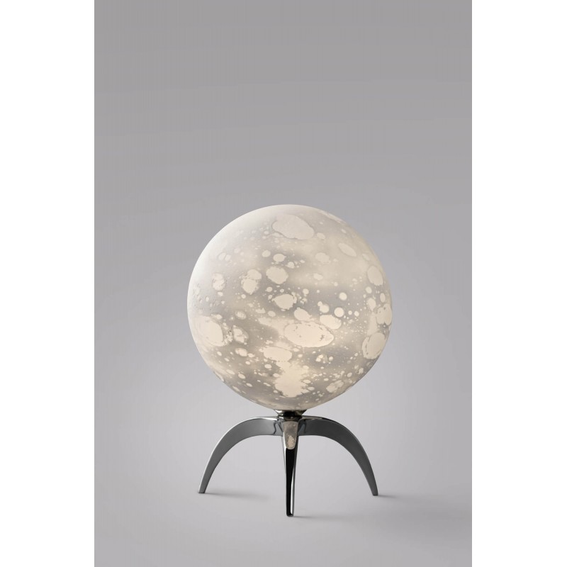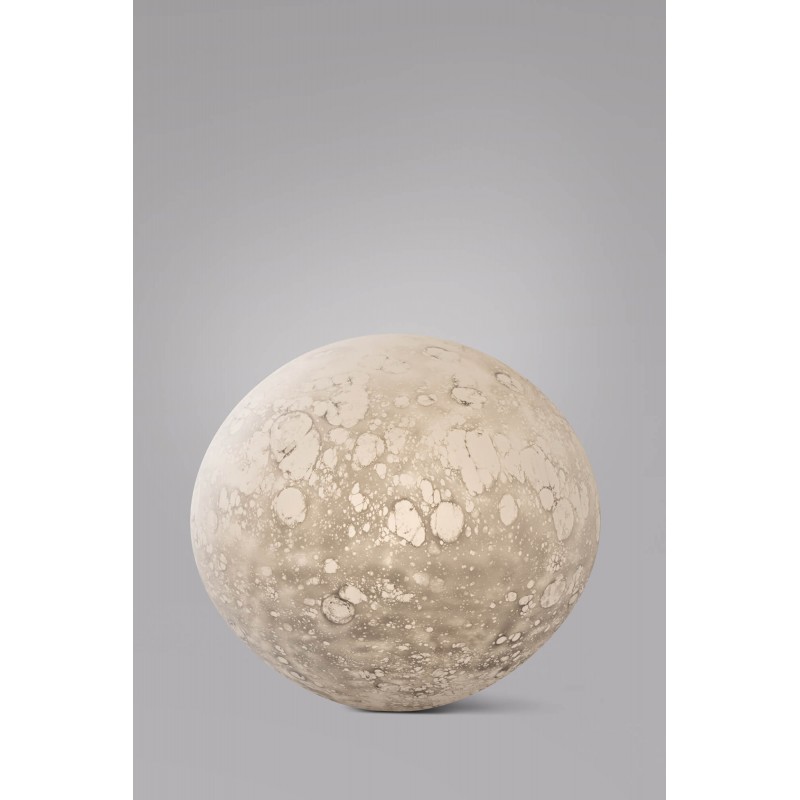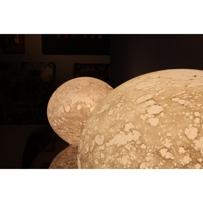 Our Planètes are unique and exclusive blown-glass pieces. Different types of glass (eight distinct types of white Planètes), the variety of sizes and lamp stands enable to customize the lamp according to desires: for example, in a cage, like a captured galaxy, or on a tripod, like a lunar landing.