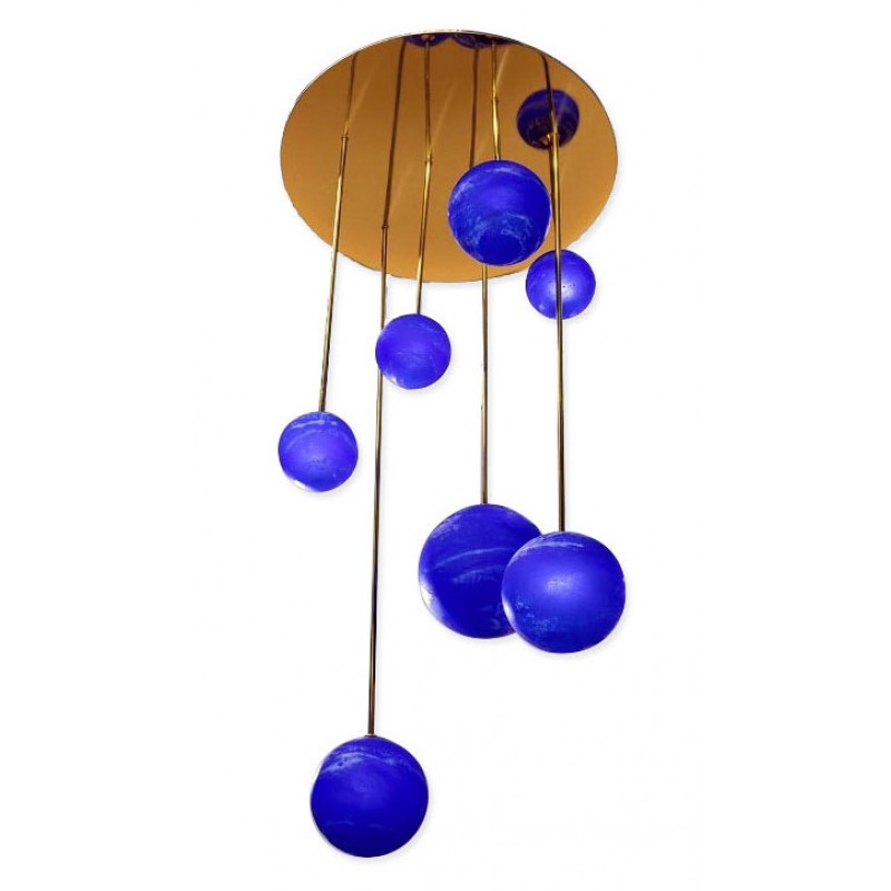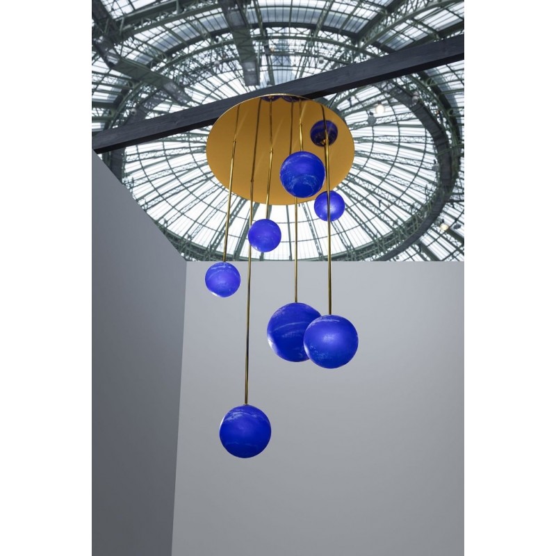 After the lights evoking the Stars, the Moon and Planets, Semeur d’étoiles (Star Sower) wanted to propose a sky evocating piece. Thus, this chandelier consists of glassware reproducing a cloudy sky. Ciel (Sky) glassware can also be mounted differently: table lamp, mobile chandeliers, necklace chandelier.