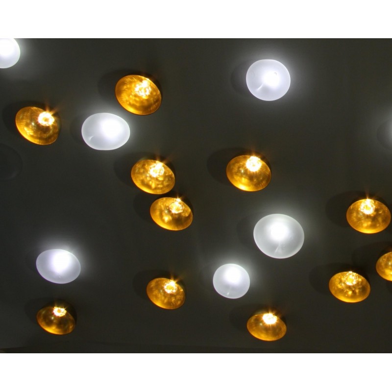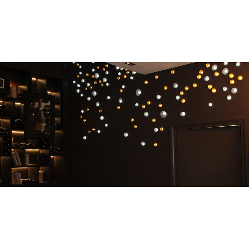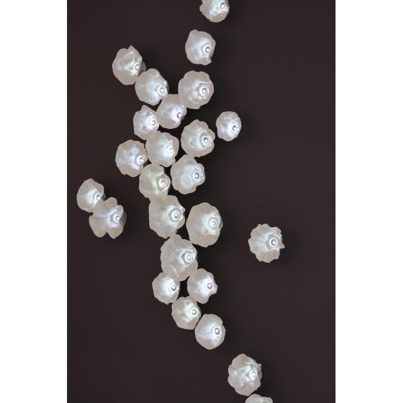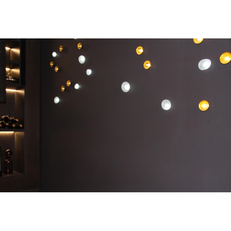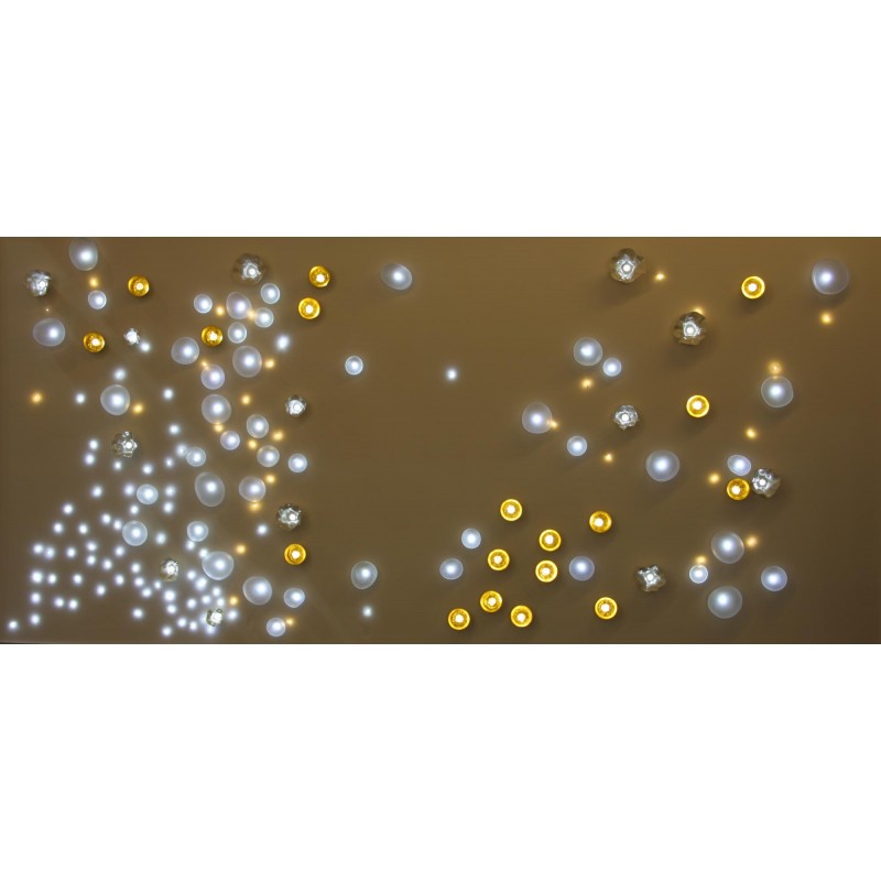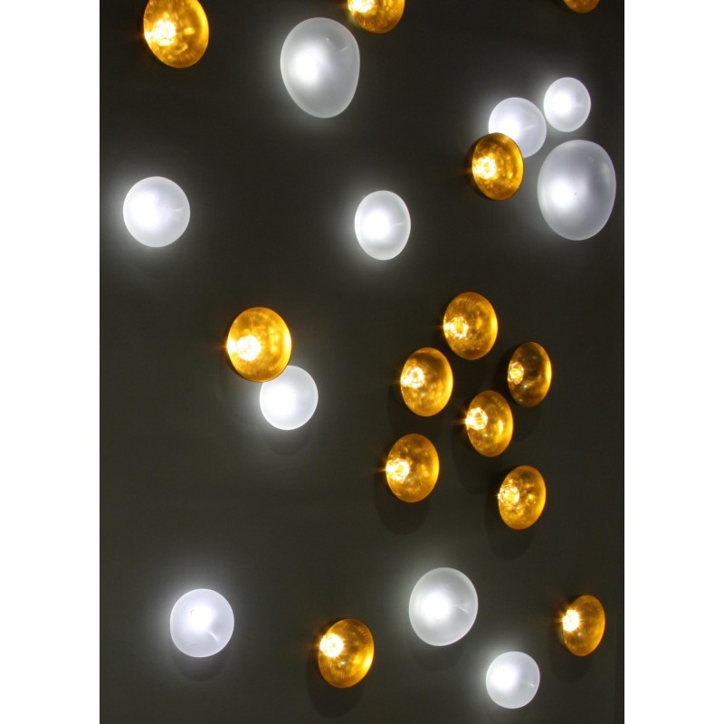 Elegant combination of light and materials, our Natures Harmonieuses (Nature & Harmony) are made with LEDs, blown glass, brass, molded porcelain and hand-cut crystals. These noble materials are hand-crafted and combined with light to produce ornamental walls or ceilings. Which seem to come alive. Freedom of choice and placement creates a unique composition adapted to your space. We offer several installation technics to integrate the decorative elements into a wall or ceiling.