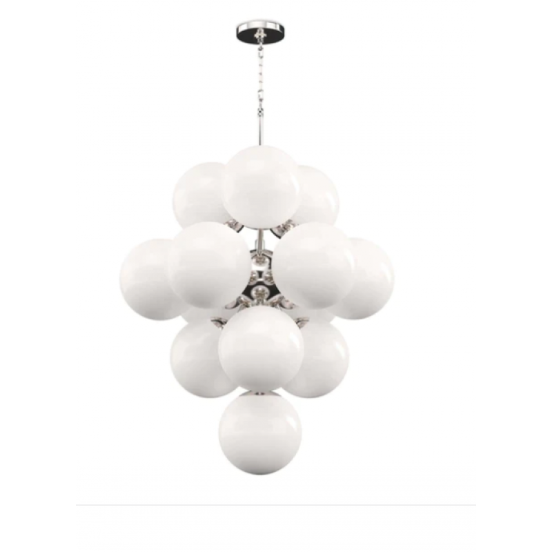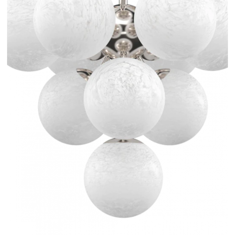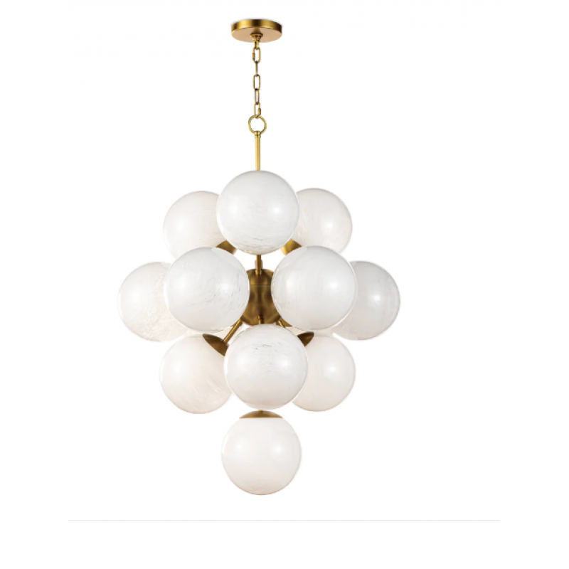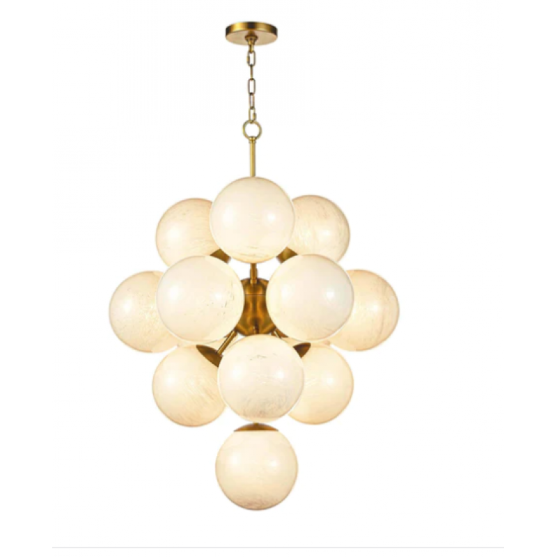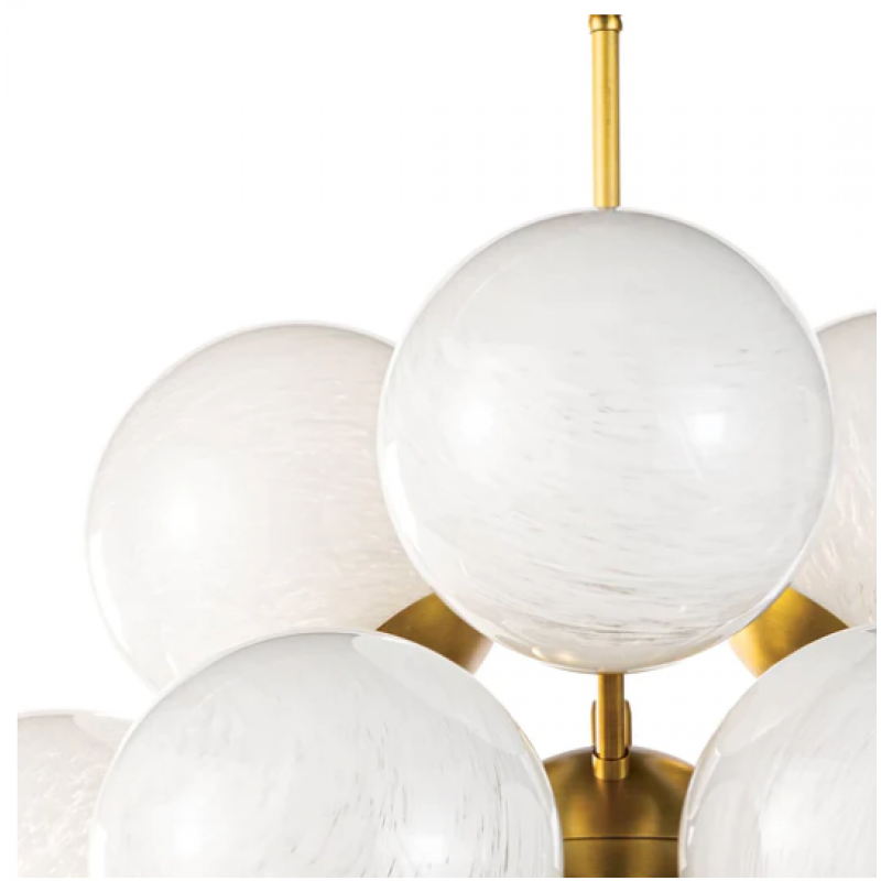 Mid-Century Modern meets French glamour in La Dame chandelier. Its swirl glass globes will illuminate a romantic glow providing an ethereal look. At 3 feet long, this statement piece would 'wow' in a foyer or dining room with high ceilings.