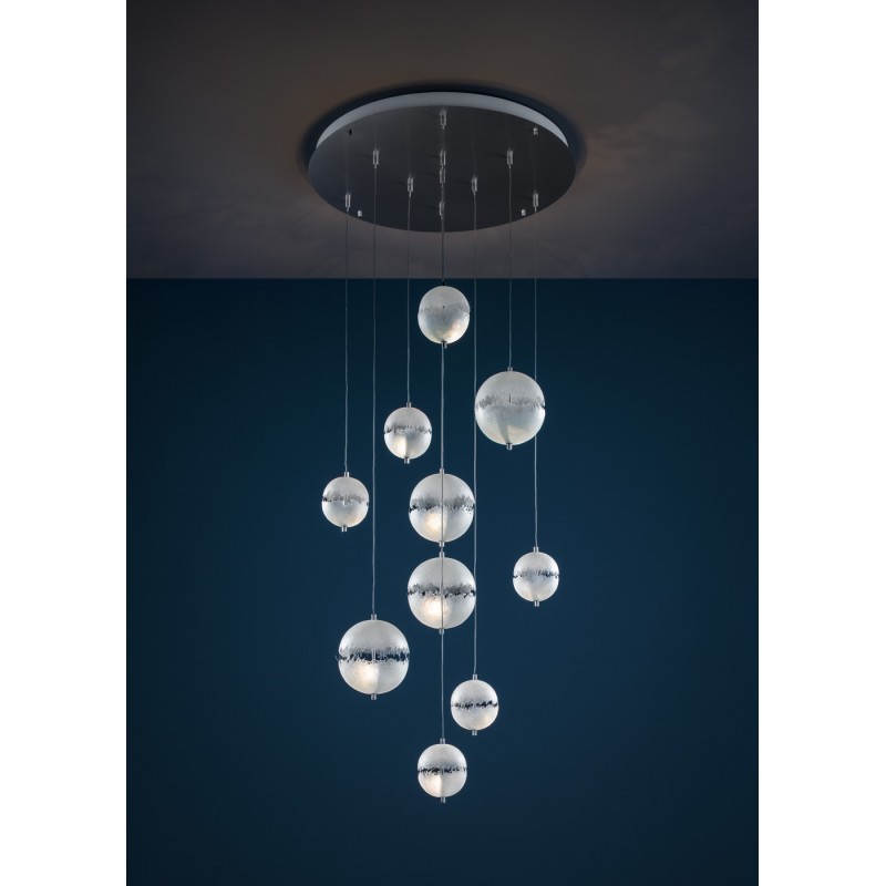 Materials: satin steel base, PostKrisi shades in fiberglass natural Ø 14 or 20 cm (PK) or Sweet Light Ø 10 cm in aluminium wire (SL)