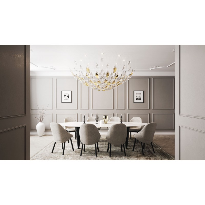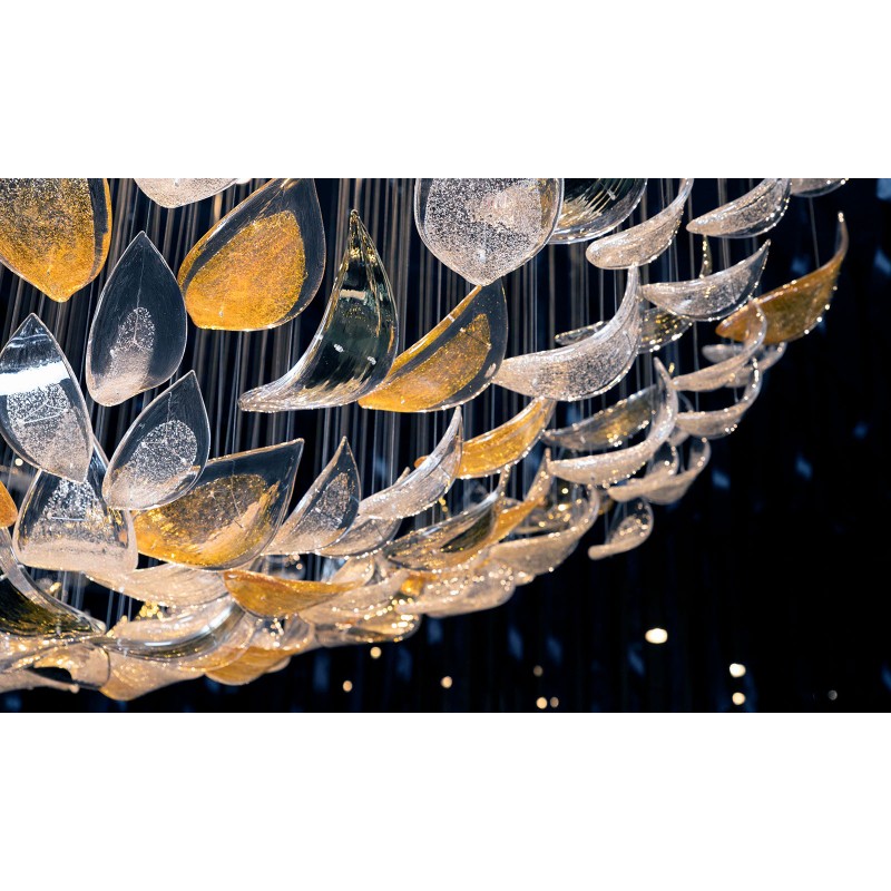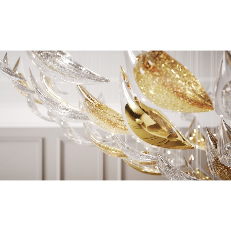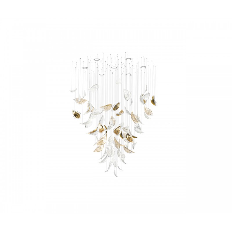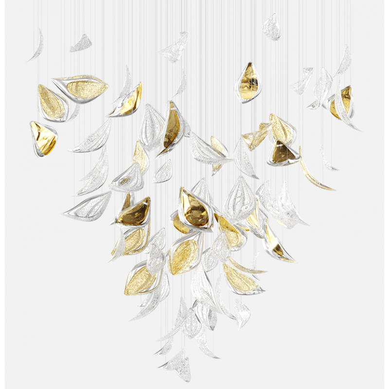 PRIMAVERA’S INTRICATE REFERENCE TO THE COMING OF A NEW SEASON, WITH ITS LUSH GROWTH OF FLOWERS, IS MASTERFULLY RENDERED IN HANDBLOWN CRYSTAL GLASS PETALS IN CLEAR AND GOLDEN HUES AND ARTFULLY ARRANGED IN A POWERFUL INSTALLATION FILLED WITH THE LIGHTNESS OF THE MASTERPIECE ITSELF.
