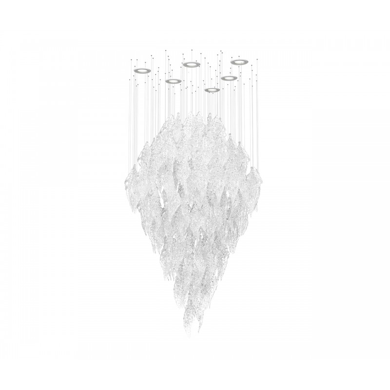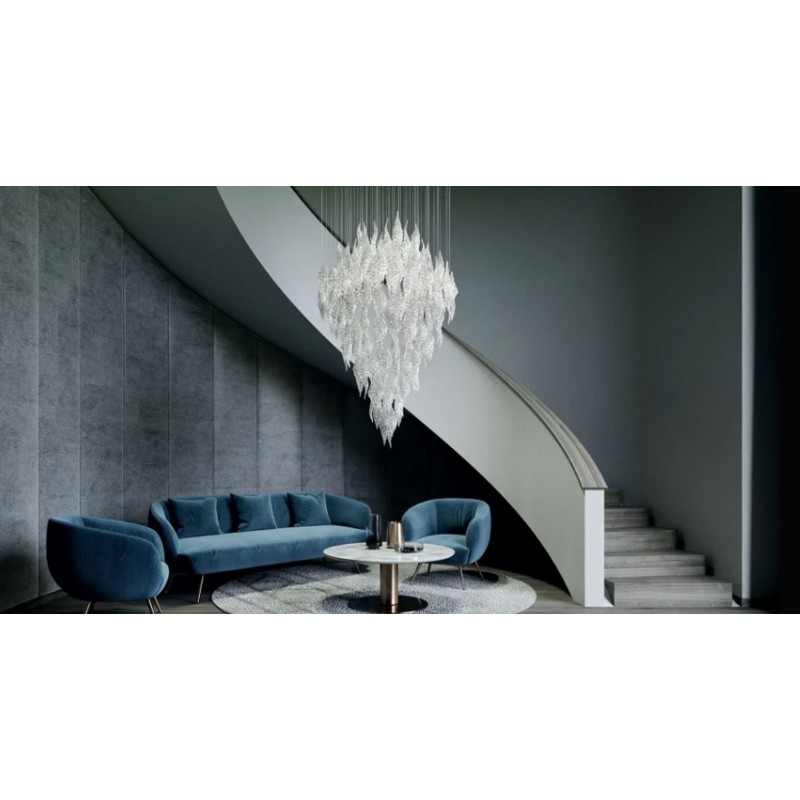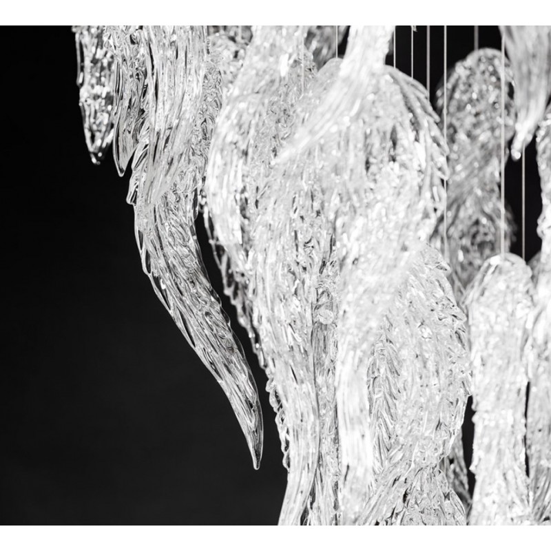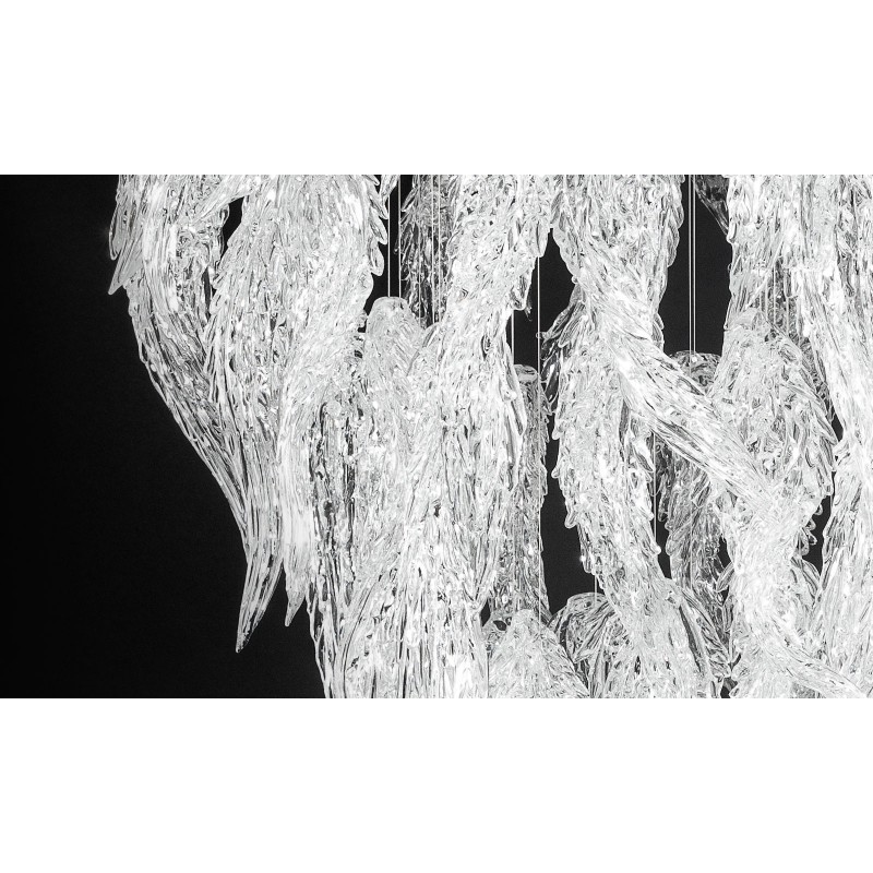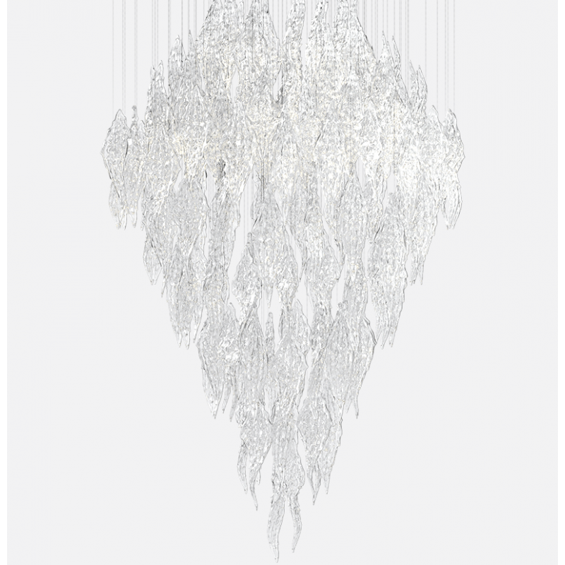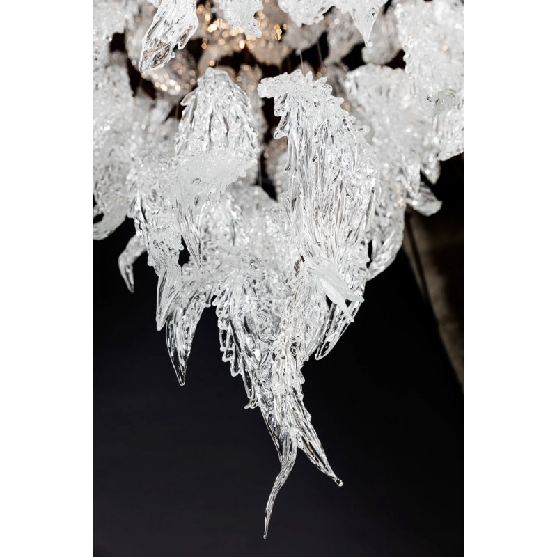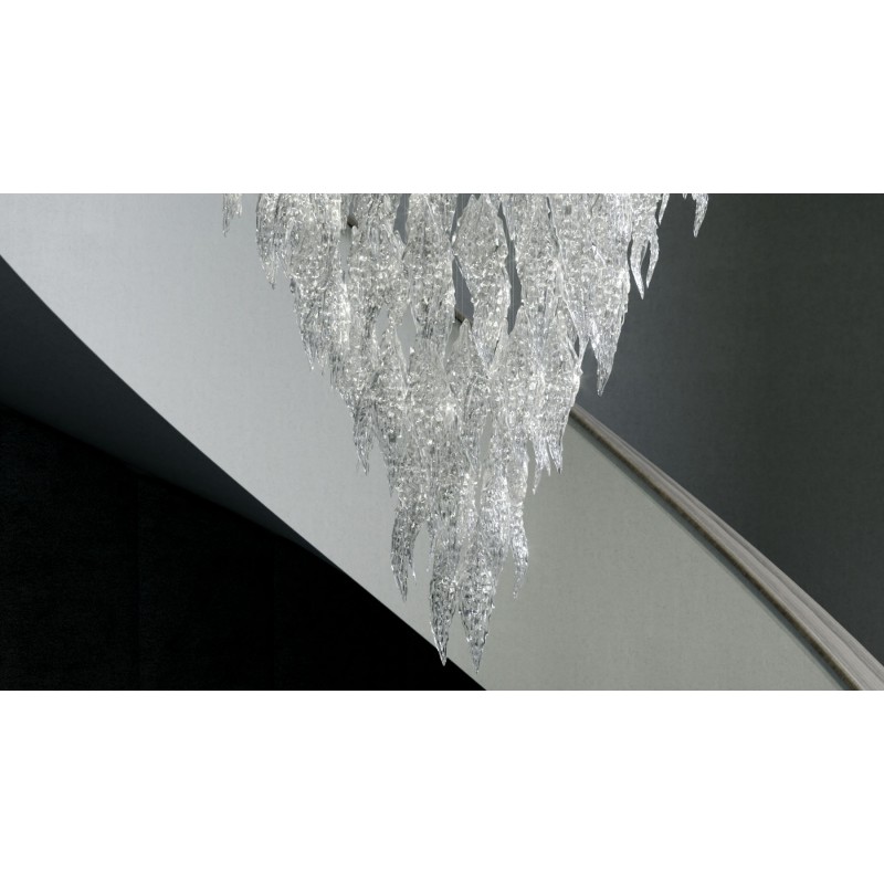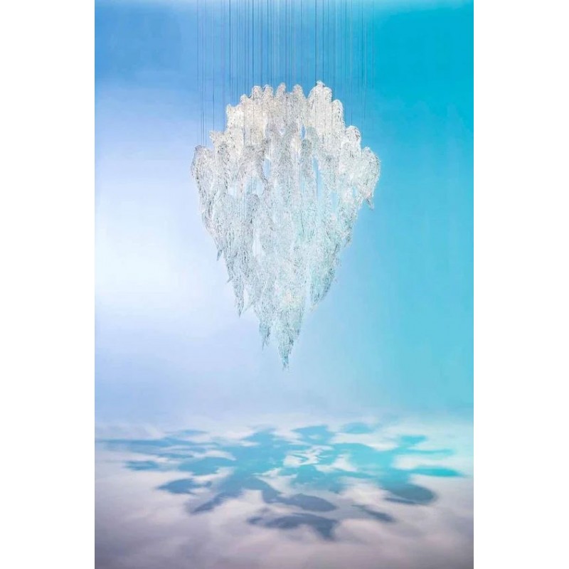 The hand-blown crystal leaves rely on the exceptional craft and artistry of master glassmakers to reveal incredible complexity, as a centerpiece, frosty leaves tell a fairy tale of ethereal beauty reminiscent of angel wings and cool icy inspiration. Light and glass form an incredibly powerful duo. The abstract nature of light intersects with the properties of glass, which serves as its medium. This combination allows for the creation of awe-inspiring objects. The FROSTY LEAVES walking in the winter wonderland. Creatively designed by frost and nature itself. Ice encrusted leaves create a magical, almost celestial atmosphere in your interior. At Alan Mizrahi Lighting Design, we supply and manufacturer many highly sought after designer pieces. All Chandeliers can be customized by number of lights, style, color and size to meet your specific needs. Every chandelier can also be combined with a matching table lamp and wall lamp to accomplish the best room design.
