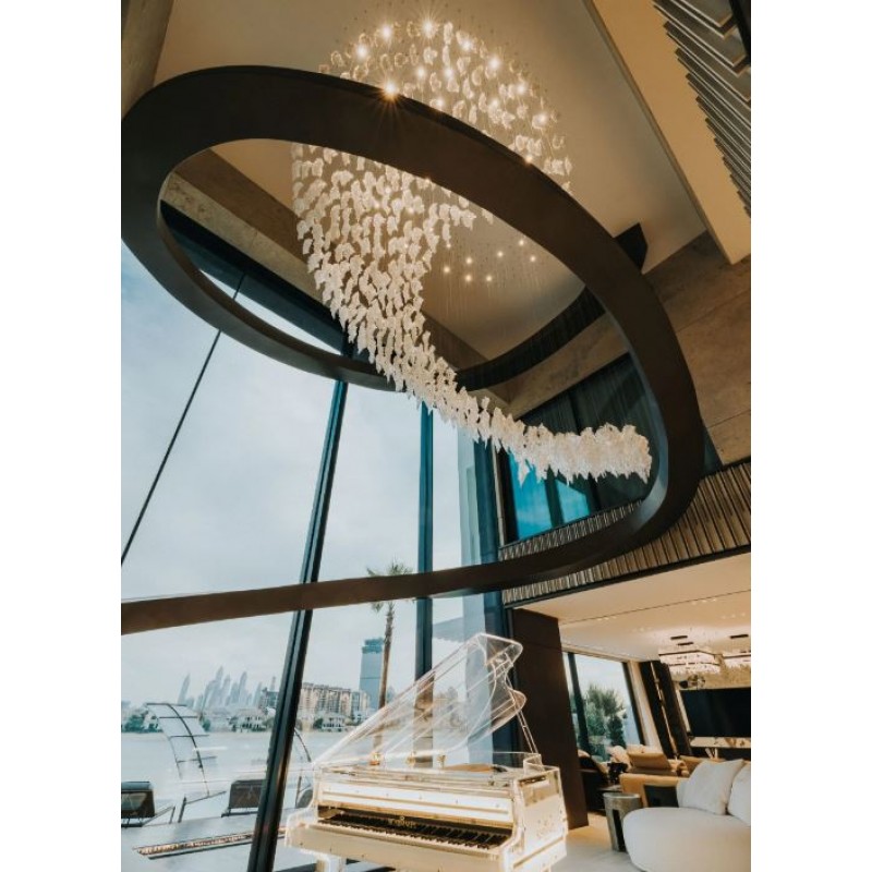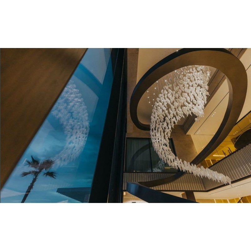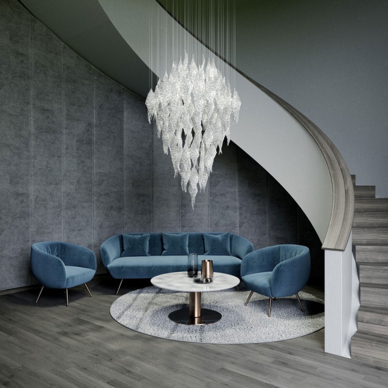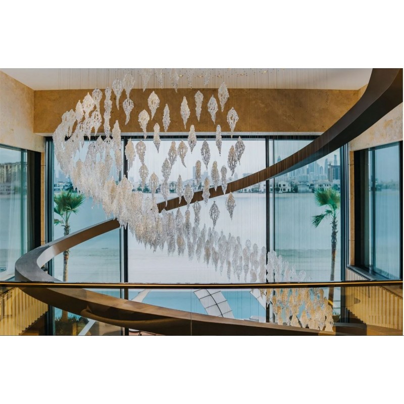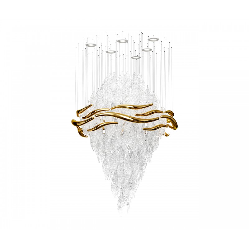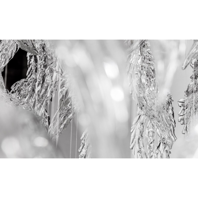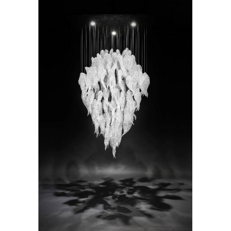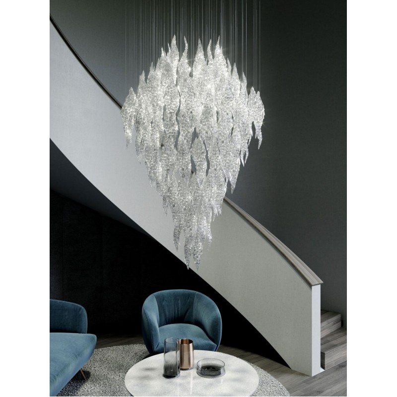 The hand-blown crystal leaves rely on the exceptional craft and artistry of master glassmakers to reveal incredible complexity, as a centerpiece, frosty leaves tell a fairy tale of ethereal beauty reminiscent of angel wings and cool icy inspiration. Light and glass form an incredibly powerful duo. The abstract nature of light intersects with the properties of glass, which serves as its medium. This combination allows for the creation of awe-inspiring objects. The FROSTY LEAVES walking in the winter wonderland. Creatively designed by frost and nature itself. Ice encrusted leaves create a magical, almost celestial atmosphere in your interior. At Alan Mizrahi Lighting Design, we supply and manufacturer many highly sought after designer pieces. All Chandeliers can be customized by number of lights, style, color and size to meet your specific needs. Every chandelier can also be combined with a matching table lamp and wall lamp to accomplish the best room design.