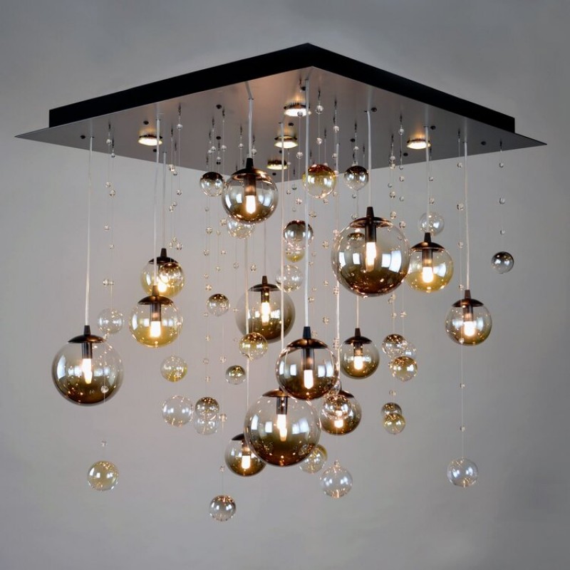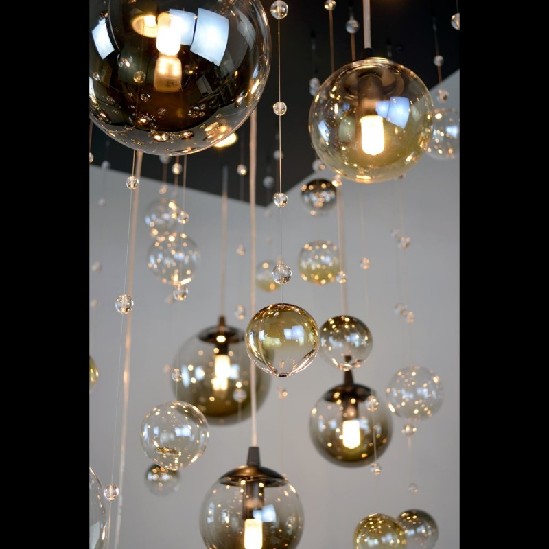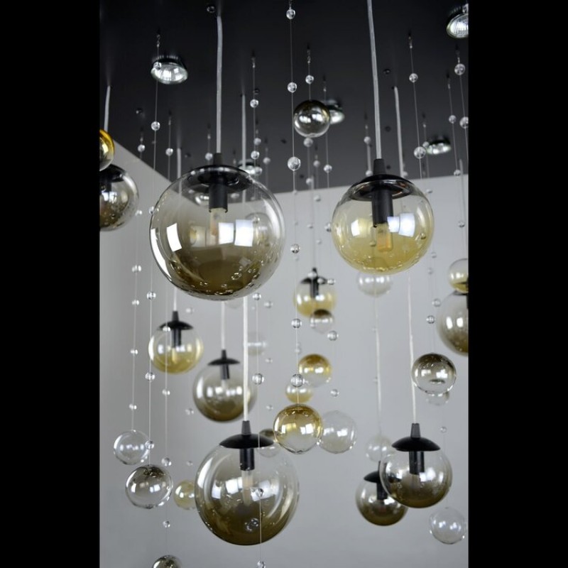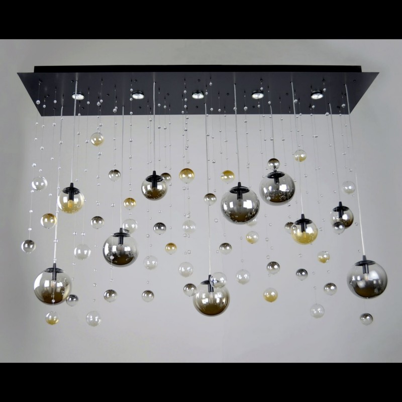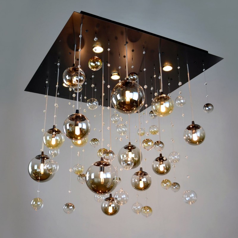 This elegant chandelier is decorated with the finest crystal blown bubbles.