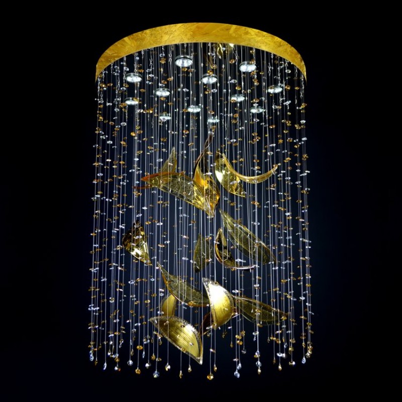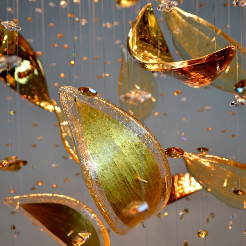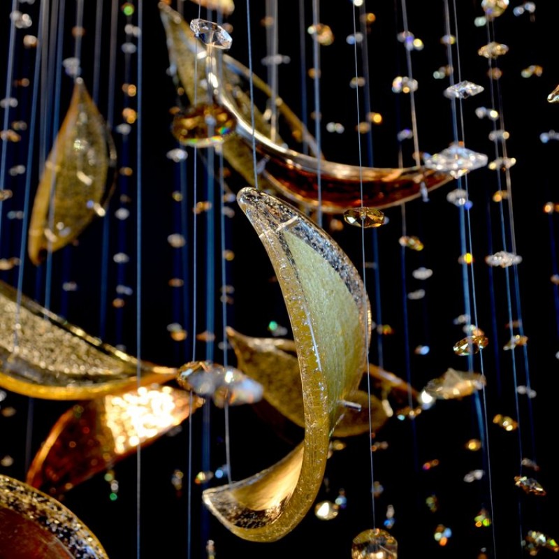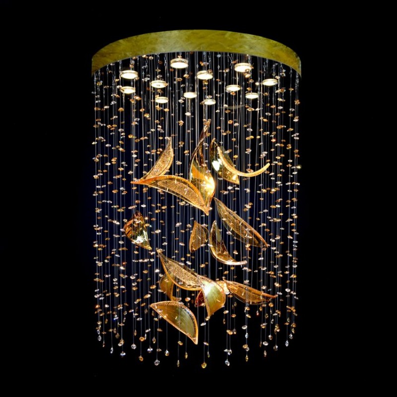 The Linden chandelier is made of a highly polished stainless steel mirror, from which high-quality crystal leaves are launched and a kind of "rain" of other crystal elements is created around them. Looking at this chandelier will remind you of the beauty of rainy autumn.