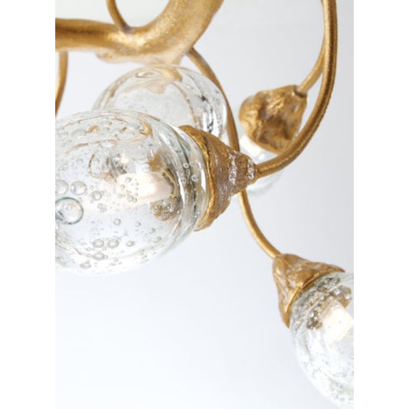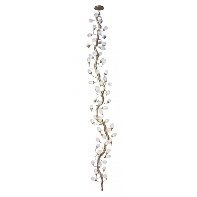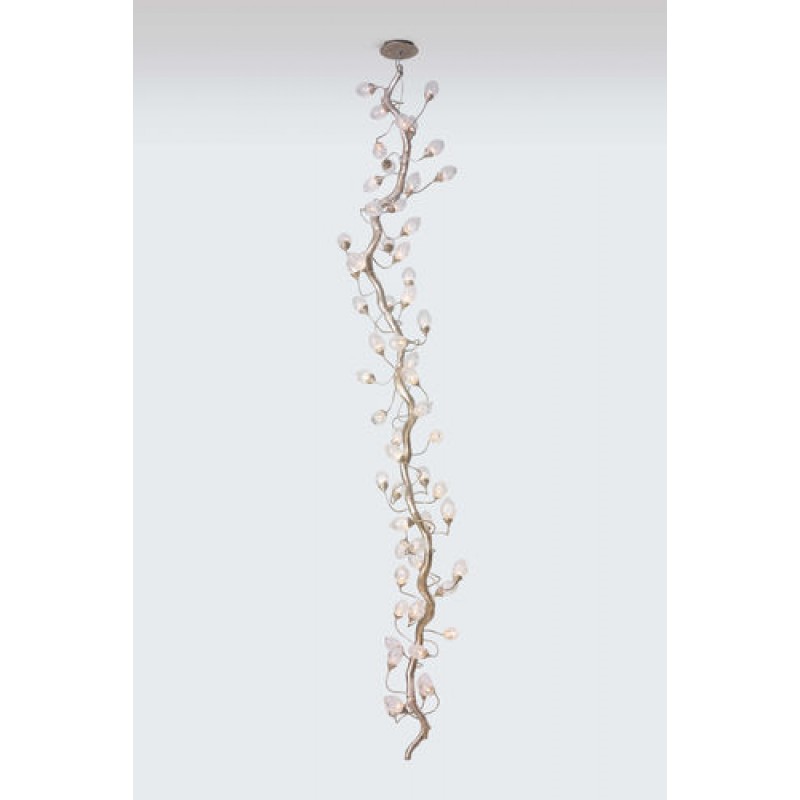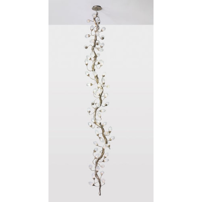 Inspired by an entangled blooming lotus, the design follows the inherent evolutionary disposition of an organism, proposing a spiral arrangement almost like a living sculpture of motion and growing light sources. The egg-shaped glass pieces emit light to involve the entire piece as a single organic silhouette, a Serip feature throughout all lighting designs, revealing an interesting glass work that includes bubbles in each piece - factor that confers unique characteristics to the light emission. Ideal for staircase areas and vertical architecture by its slick presentation.