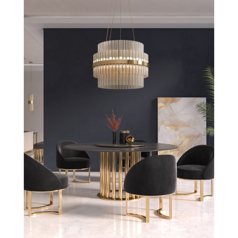 Highly decorative and elegant, this luxurious lighting fixture fits perfectly into modern lounges and large dining areas. All in all, Halma Suspension will certainly capture the attention of your guests.