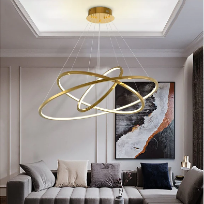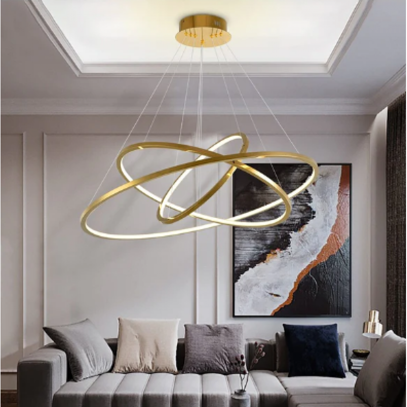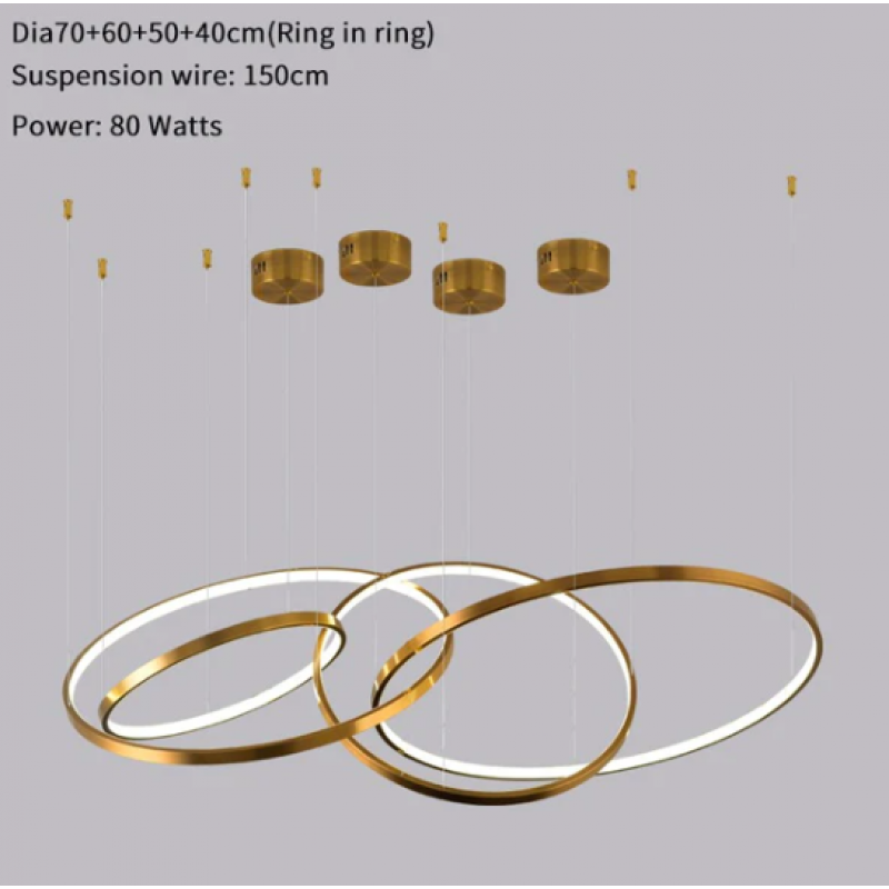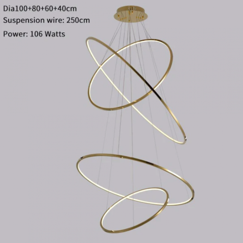 Simple yet elegant pendant light/chandelier. Modern mini-malistic design. 1.5mm stainless steel with a vacuum plated gold surface and polymer silicone lampshade. Long-life LED chip. Adjustable hanging length. For high ceilings, we can customize suspension wires according to your request.Suitable for lobbies, bedrooms, living rooms, dining rooms, staircases, etc.