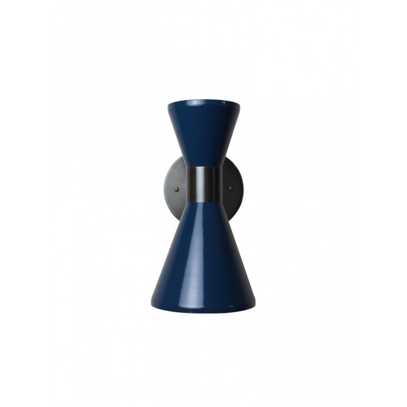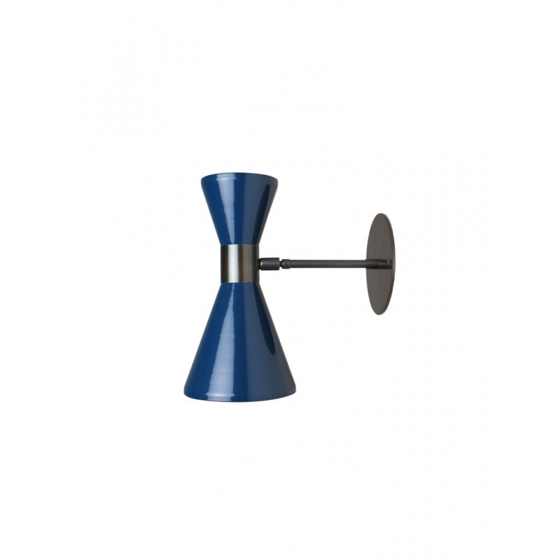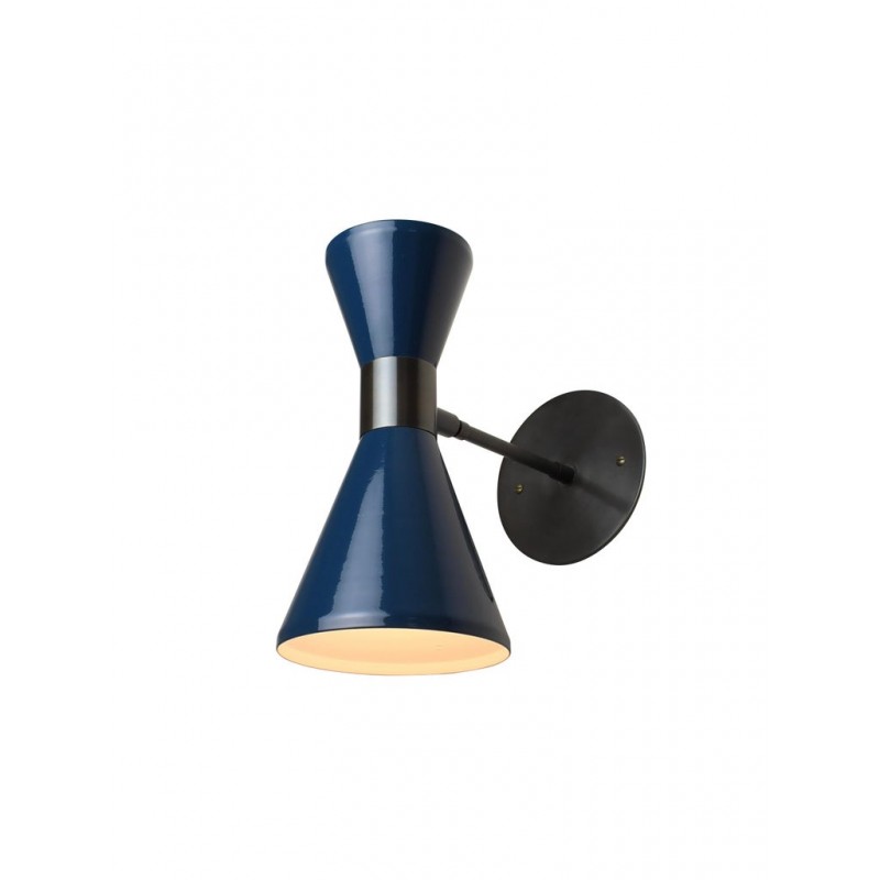 The Campana wall sconce or reading light shown in oil-rubbed bronze and dark blue enamel by Blueprint Lighting, 2018. The wide band and distinctly bevelled edge makes the Campana a strong design statement. Swiveling head allows for cone adjustment. The spun aluminum cones are influenced by vintage a 1950s Italian design. This design is strongly influenced by both French and Italian Mid-Century Modernism. Priced per piece, but may be ordered in any quantity.