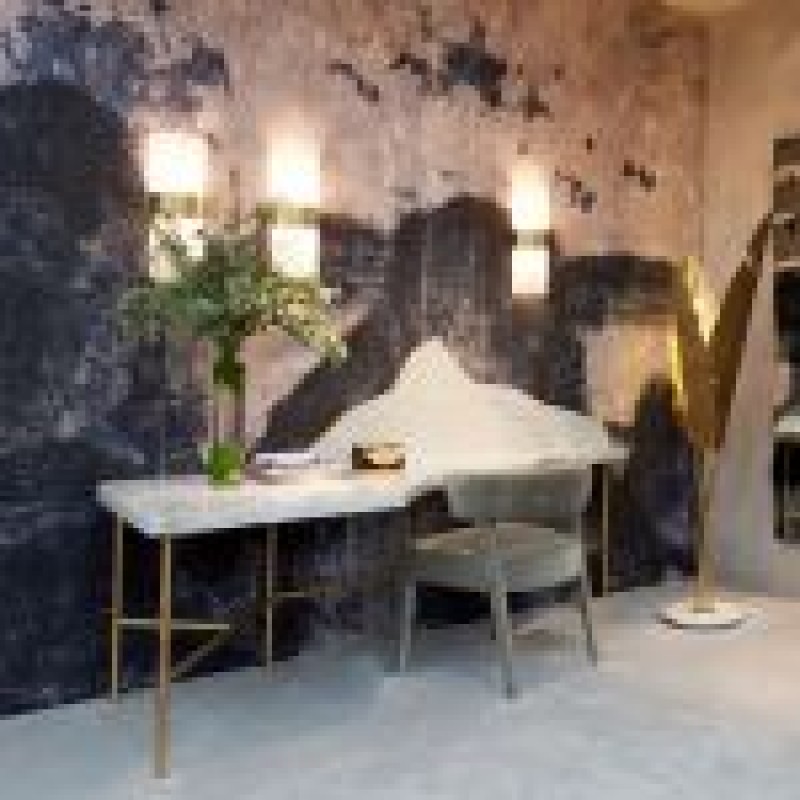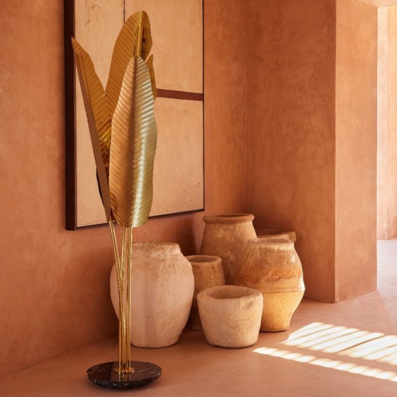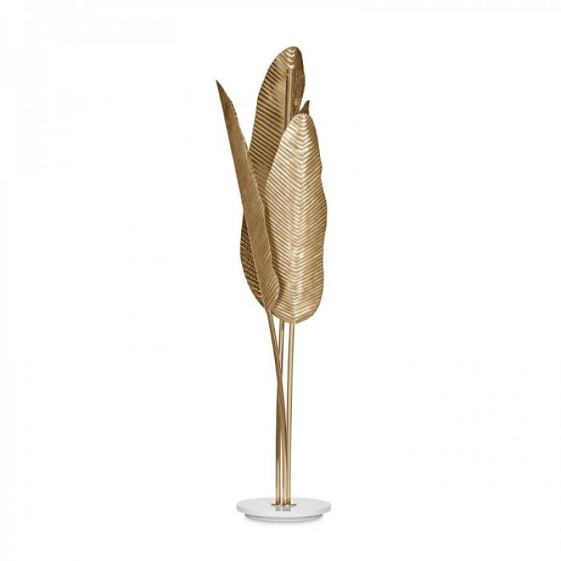 Bananas brings to life the banana tree, with its elongated curved shape hosting hand-turned brass leaves. Emerging from a circular marble base, each leaf is connected to separate lighting tubes and features a uniquely chiseled texture, allowing the light to be both reflected and diused along the surface, culminating in a stand out piece for any living space.