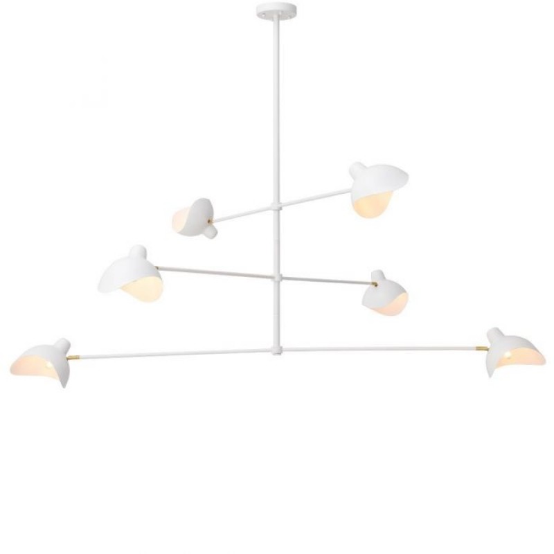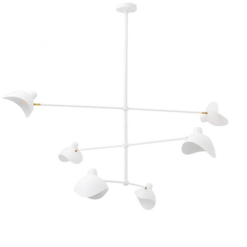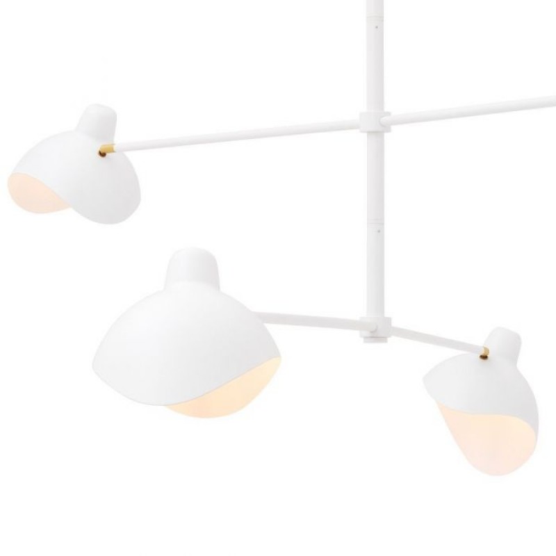The white Vince Chandelier captures the aesthetic of designer lamps from the 1950s and 60s. In terms of shape, the white finish lampshades are reminiscent of vintage horse riding caps. For ultimate flexibility, the shades can be rotated in every desired direction. Combine with our A shape LED bulbs for a bold yet warm lighting effect.