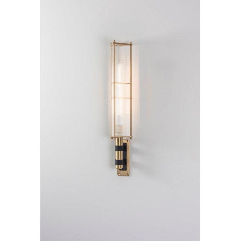 Clear acrylic rods and machined solid brass lend weight to this eye-catching linear design which commands attention in any space.