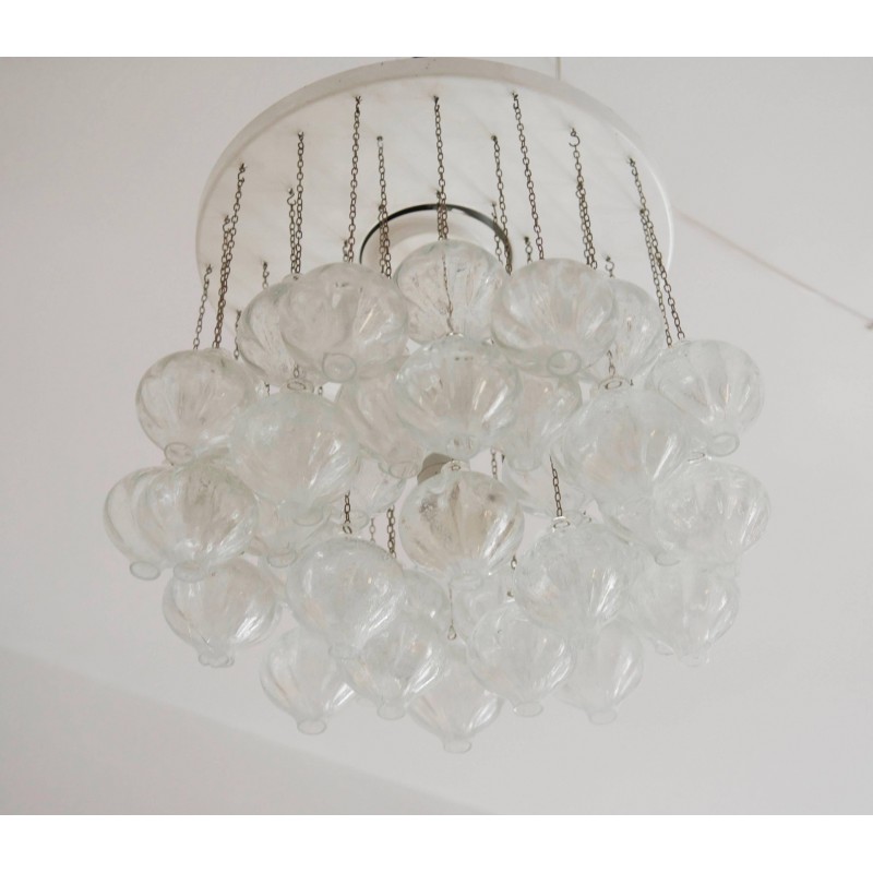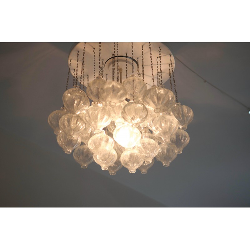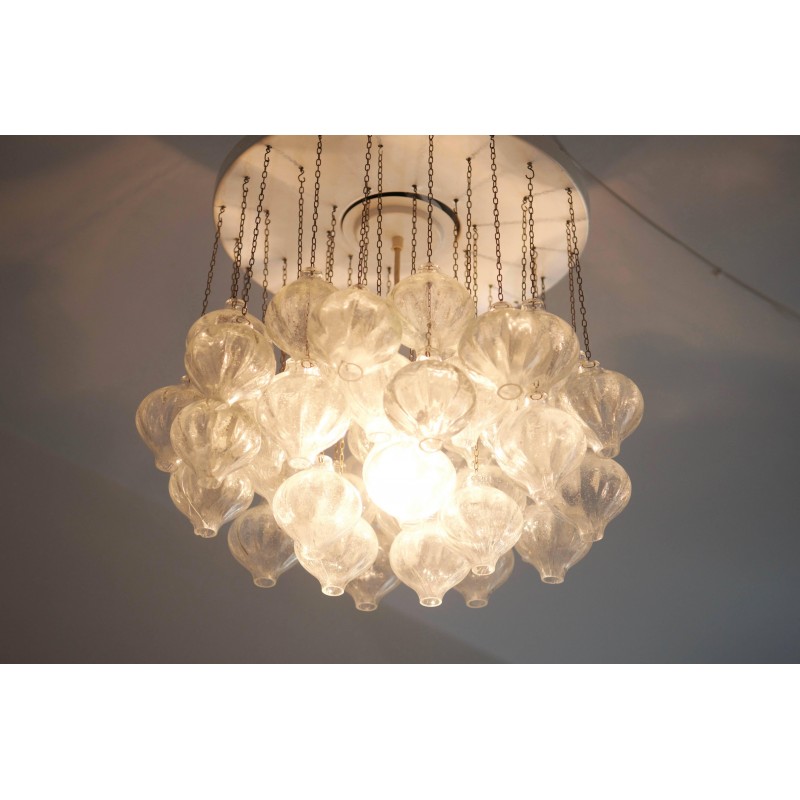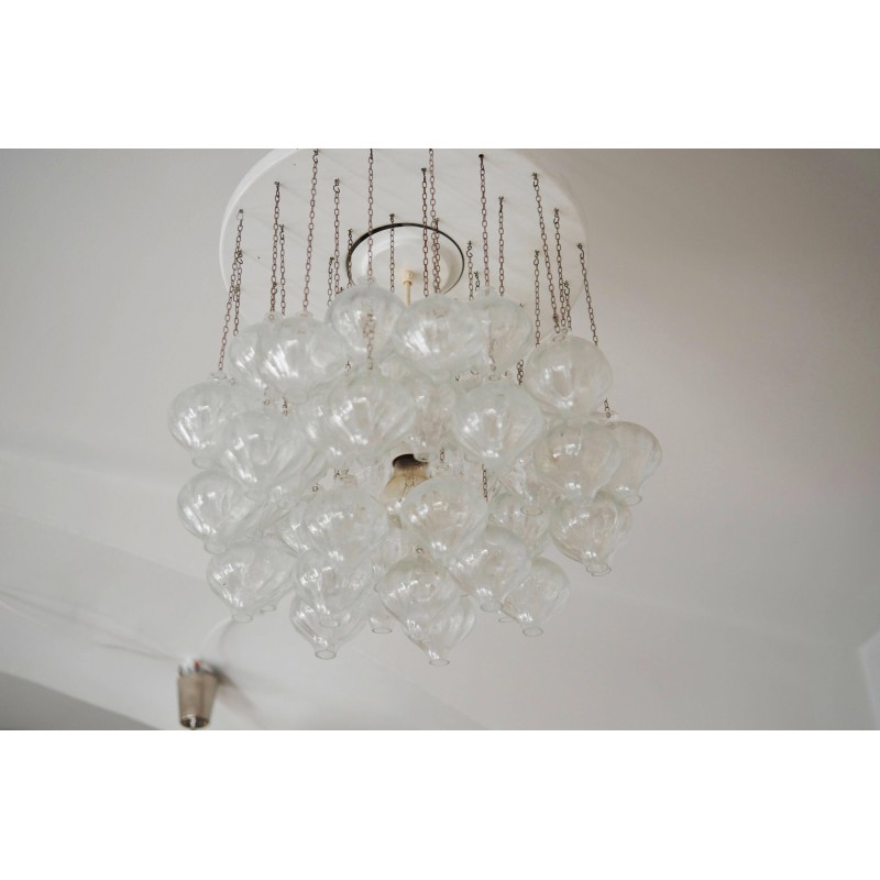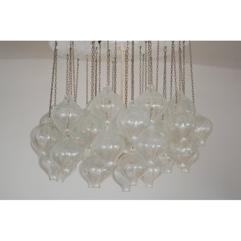 Chandelier fitted with one E27 bulb and 50 handblown glass elements made by J.T. Kalmar.
